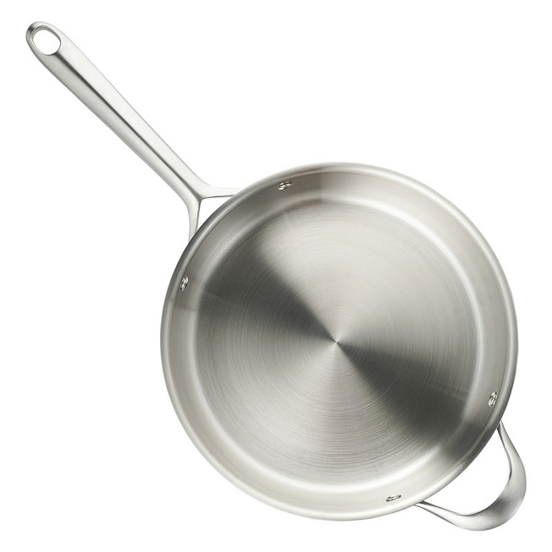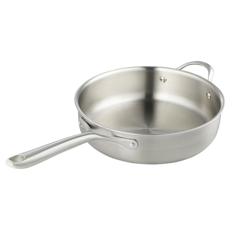 Сотейник с крышкой 3Ply Etalon, изготовленный по инновационной технологии TRI-PLY, поможет получить настоящее удовольствие от готовки и позволит почувствовать себя настоящим шеф-поваром на собственной кухне.Особенности и преимущества:- Сотейник изготовлен из высококачественной нержавеющей стали 18/10, благодаря чему долго служит, сохраняя первозданный вид. - Дно и стенки из нержавеющей стали толщиной 2,5 мм с внутренним слоем из алюминия обеспечивают равномерное распределение тепла. - Посуда с толстым дном и стенками менее подвержена вмятинам и повреждениям. - Устойчивая к нагреву ручка гарантирует безопасное и удобное использование. - Мерная шкала, нанесенная на внутреннюю поверхность посуды, позволяет быстро и легко отмерять нужное количество жидкости. - Крышка выполнена из ударопрочного закаленного стекла и оснащена отверстием для вывода пара. - Сотейник подходит для всех видов плит, включая индукционные, газовые и электрические. - Благодаря матовой поверхности посуда 3Ply Etalon выглядит невероятно стильно, что делает ее украшением любой современной кухни.Посуда из нержавеющей стали 3Ply Etalon изготовлена по инновационной технологии TRI-PLY – ее стенки и дно имеют два слоя стали, между которыми предусмотрен слой алюминия. Эта особенность обеспечивает изделиям превосходную теплопроводность, практичность и долговечность. Коллекция идеально подходит для любых типов плит и впечатляет трендовым дизайном – сочетание современных форм и матовой поверхности делает ее настоящим украшением любой кухни.Материал: нержавеющая сталь, алюминий, стекло. Диаметр по краю внешний: 27,7 см. Диаметр по краю внутренний: 26 см. Длина: 52,7 см. Высота: 7,3 см. Диаметр дна снаружи: 24 см. Диаметр дна изнутри: 24 см. Высота стенки изнутри: 7 см.Можно мыть вручную и в посудомоечной машине. Перед первым использованием необходимо промыть сотейник в теплой мыльной воде при помощи мягкой губки. В дальнейшем рекомендуется очищать посуду сразу после приготовления, как только она остынет. Запрещается использование абразивов и агрессивной бытовой химии.