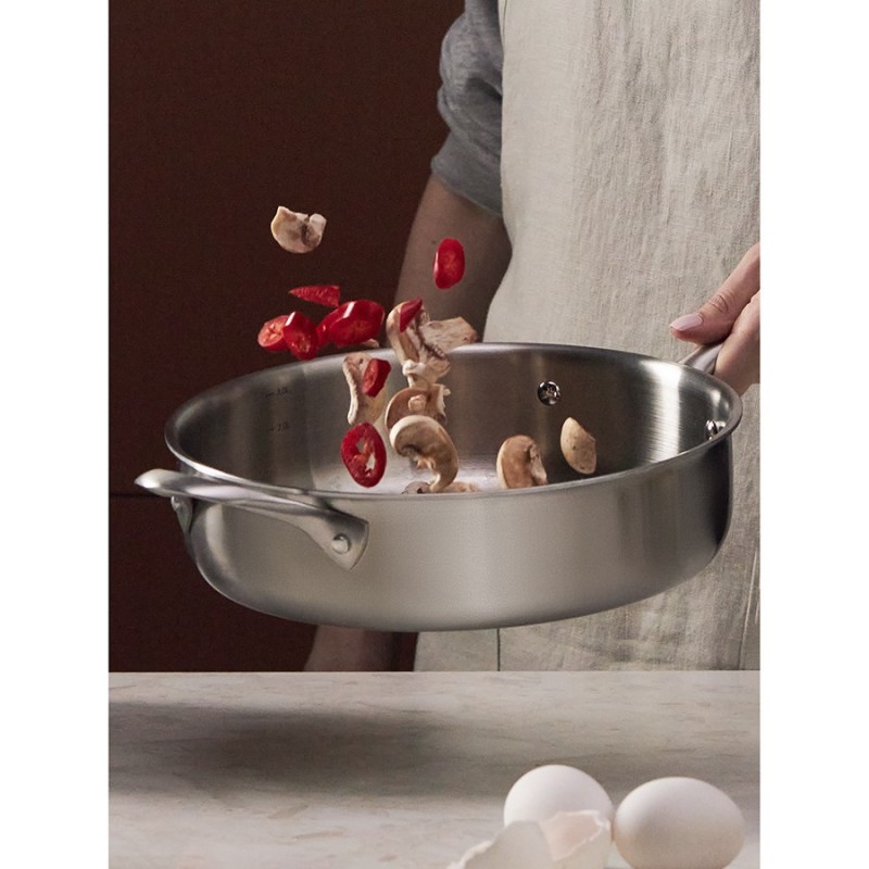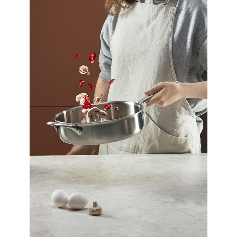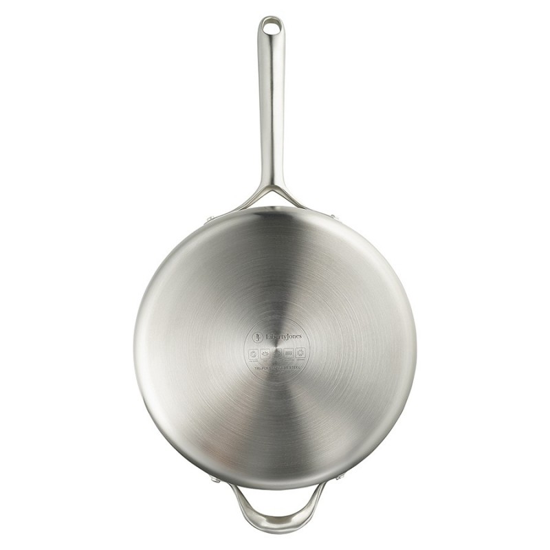Сотейник с крышкой 3Ply Etalon, изготовленный по инновационной технологии TRI-PLY, поможет получить настоящее удовольствие от готовки и позволит почувствовать себя настоящим шеф-поваром на собственной кухне.Особенности и преимущества:- Сотейник изготовлен из высококачественной нержавеющей стали 18/10, благодаря чему долго служит, сохраняя первозданный вид. - Дно и стенки из нержавеющей стали толщиной 2,5 мм с внутренним слоем из алюминия обеспечивают равномерное распределение тепла. - Посуда с толстым дном и стенками менее подвержена вмятинам и повреждениям. - Устойчивая к нагреву ручка гарантирует безопасное и удобное использование. - Мерная шкала, нанесенная на внутреннюю поверхность посуды, позволяет быстро и легко отмерять нужное количество жидкости. - Крышка выполнена из ударопрочного закаленного стекла и оснащена отверстием для вывода пара. - Сотейник подходит для всех видов плит, включая индукционные, газовые и электрические. - Благодаря матовой поверхности посуда 3Ply Etalon выглядит невероятно стильно, что делает ее украшением любой современной кухни.Посуда из нержавеющей стали 3Ply Etalon изготовлена по инновационной технологии TRI-PLY – ее стенки и дно имеют два слоя стали, между которыми предусмотрен слой алюминия. Эта особенность обеспечивает изделиям превосходную теплопроводность, практичность и долговечность. Коллекция идеально подходит для любых типов плит и впечатляет трендовым дизайном – сочетание современных форм и матовой поверхности делает ее настоящим украшением любой кухни.Материал: нержавеющая сталь, алюминий, стекло. Диаметр по краю внешний: 27,7 см. Диаметр по краю внутренний: 26 см. Длина: 52,7 см. Высота: 7,3 см. Диаметр дна снаружи: 24 см. Диаметр дна изнутри: 24 см. Высота стенки изнутри: 7 см.Можно мыть вручную и в посудомоечной машине. Перед первым использованием необходимо промыть сотейник в теплой мыльной воде при помощи мягкой губки. В дальнейшем рекомендуется очищать посуду сразу после приготовления, как только она остынет. Запрещается использование абразивов и агрессивной бытовой химии.