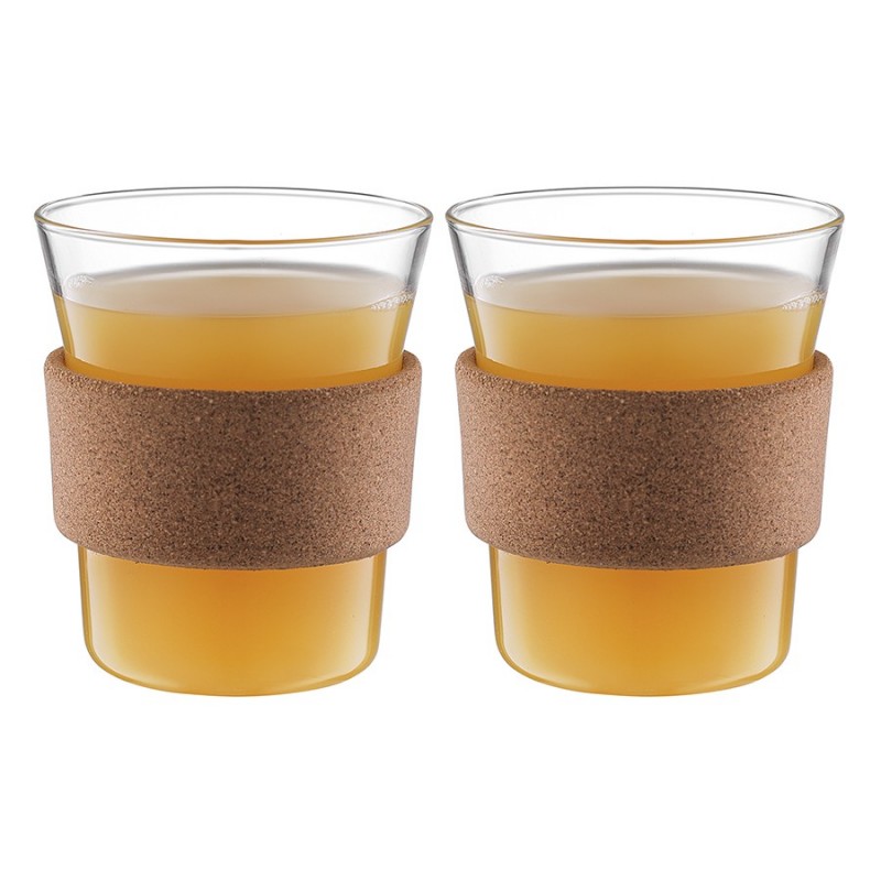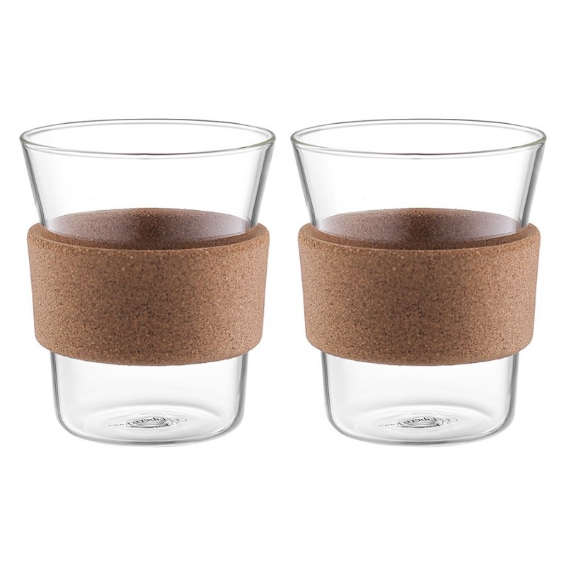 Стильные и практичные стаканы Corc Collection станут отличным дополнением к вашей коллекции посуды. Изготовленные из боросиликатного стекла с накладками из натуральной пробки, они прекрасно подойдут для холодных и горячих напитков.Особенности и преимущества:- Изделия выполнены из экологичного, прочного, стойкого к температурным перепадам боросиликатного стекла. - Материал не выделяет при нагревании и заморозке вредных веществ, не впитывает загрязнения и запахи. - Накладки из пробки делают дизайн интересным, защищают руки от ожогов и без труда снимаются, позволяя тщательно очистить посуду после использования. - Стаканы легко моются даже обычной водой, сохраняют свою прозрачность и первоначальный блеск долгие годы.Наши продукты прошли испытания на отсутствие в составе свинца в соответствии со стандартными тестами FDA.Материалы: боросиликатное стекло, пробка. Объем: 400 мл. Размеры: 9х9х10,9 см. Количество в наборе: 2 шт.Стаканы рекомендуется мыть вручную.