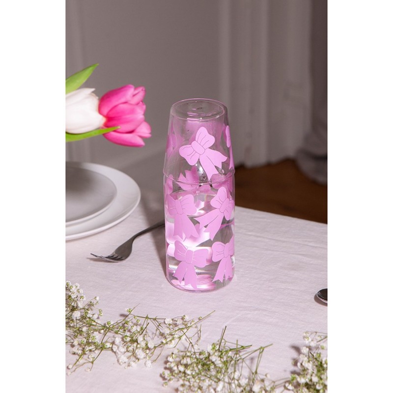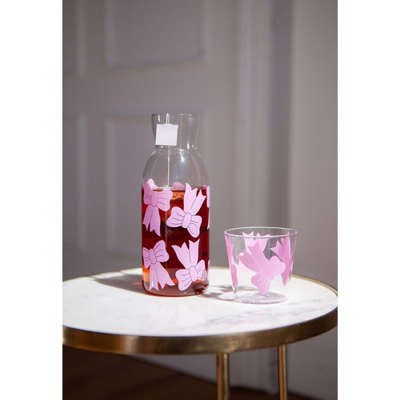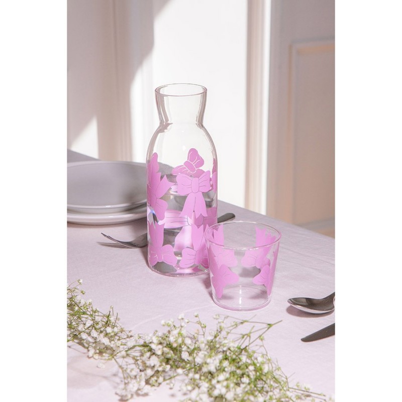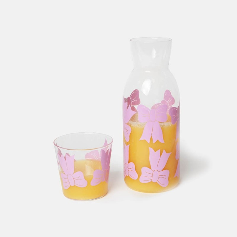 Набор из графина и стакана Bow добавит в любую сервировку нотки свежести и легкости, идеально подойдет для воды и других холодных напитков.Особенности и преимущества:- Стекло – экологически чистый, устойчивый к износу и загрязнениям материал, который не меняет вкус и запах напитков. - Яркий принт делает посуду более привлекательной и добавляет настроение в любую сервировку. - Специальная форма графина облегчает наливание напитков, минимизируя проливание.Материал: стекло. Размер графина: 8,5x8,5х22 см.Рекомендуется мыть вручную при помощи мягкой губки. Запрещается использование абразивных материалов и агрессивной бытовой химии.