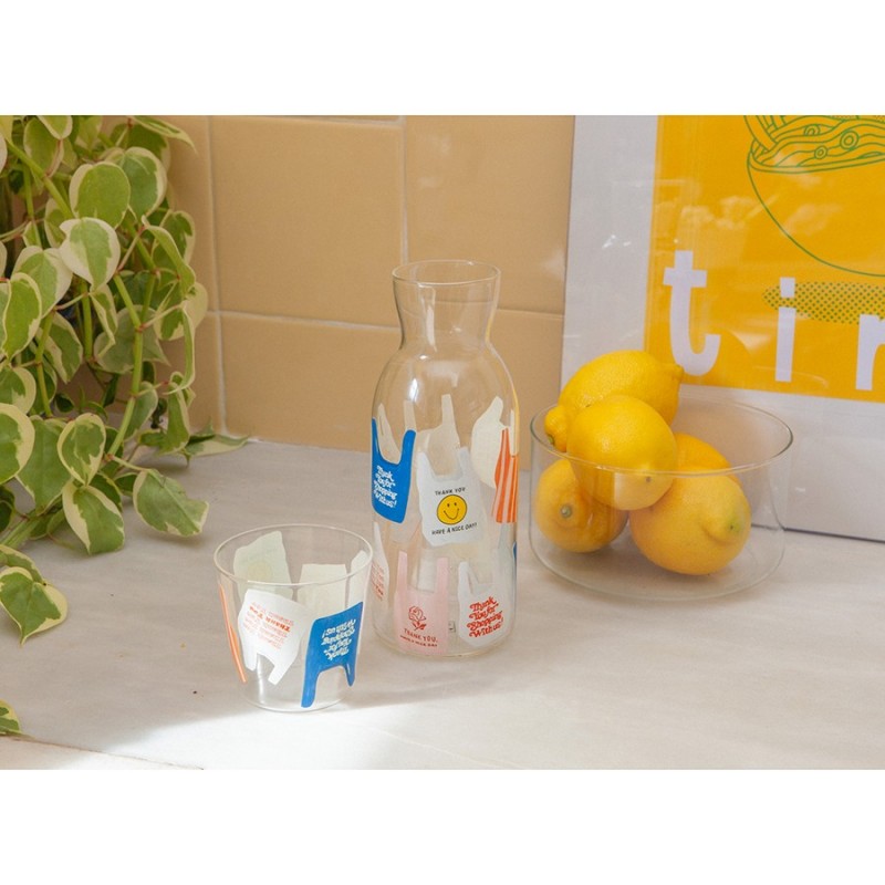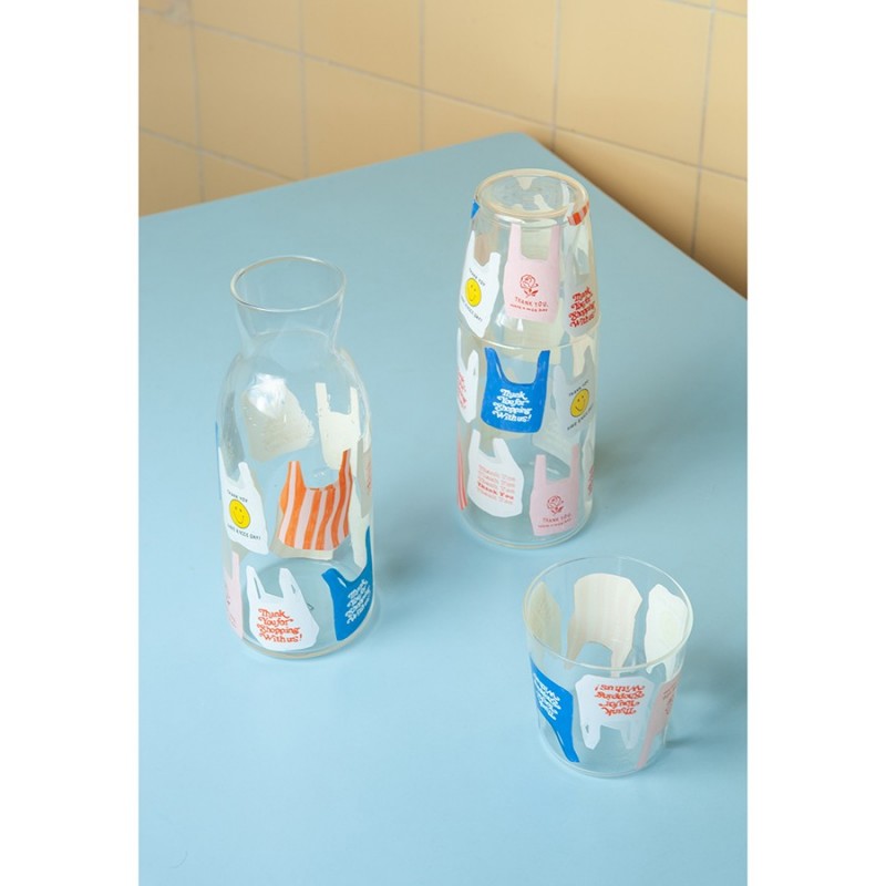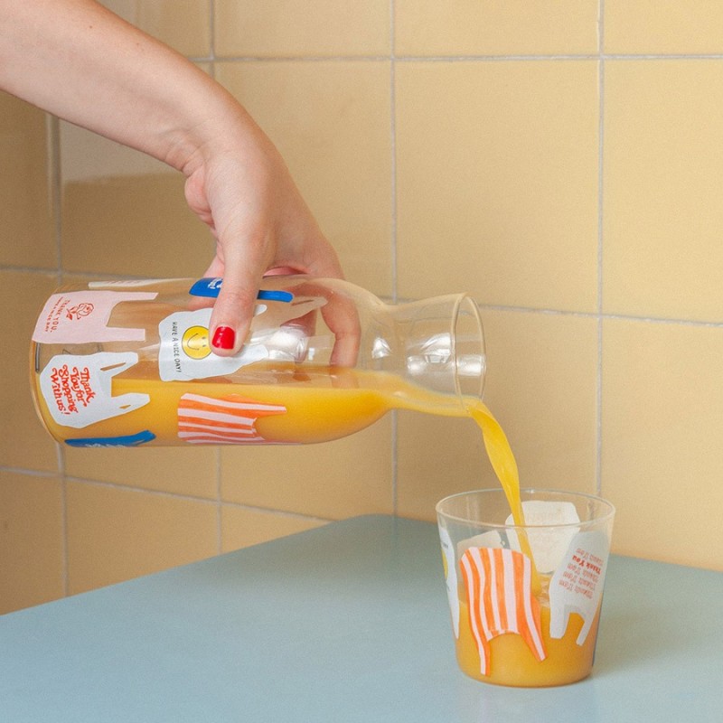 Набор из графина и стакана Thank you Bag добавит в любую сервировку игривые нотки, идеально подойдет для воды и других холодных напитков.Особенности и преимущества:- Стекло – экологически чистый, устойчивый к износу и загрязнениям материал, который не меняет вкус и запах напитков. - Яркий принт делает посуду более привлекательной и добавляет настроение в любую сервировку. - Специальная форма графина облегчает наливание напитков, минимизируя проливание.Материал: стекло. Размер графина: 8,5x8,5х22 см.Рекомендуется мыть вручную при помощи мягкой губки. Запрещается использование абразивных материалов и агрессивной бытовой химии.