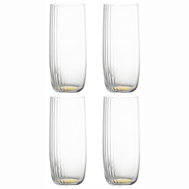 Стаканы Alice созданы с вниманием к деталям, что позволяет им стать заметным акцентом любой сервировки.Особенности и преимущества:- Изделия выполнены из выдувного стекла ручным способом, что обеспечивает им неповторимый вид и высокие эксплуатационные характеристики. - Материал является гигиеничным, химически нейтральным, обладает прочностью, долговечностью и прекрасной прозрачностью. - Стакан имеет небольшой вес и удобно сидит в руке, что позволяет чувствовать комфорт каждый раз, как только вы его поднимаете. - Сочетание гладких и рельефных фактур делает дизайн интересным и дарит приятные тактильные ощущения. - Дно имеет золотистое покрытие, которое красиво отражает свет, создавая эффектные блики и усиливая блеск стеклянных граней.Уникальная дизайнерская коллекция Alice позволит вам окунуться в сказочную атмосферу страны чудес, где реальность превращается в фантазию, а зазеркалье открывает новые грани красоты! Каждый бокал и стакан – это неповторимое произведение искусства из выдувного стекла ручной работы. Главной особенностью линейки является необычное сочетание гладких и рельефных поверхностей, а также золотистые акценты, которые создают волшебные блики и усиливают блеск стеклянных граней.Материал: выдувное стекло. Размеры: 5,8х5,8х15 см. Объем: 370 мл. Количество в наборе: 4 шт. Цвет: золотистый.Рекомендуется очищение ручным способом при помощи мягкой губки с жидким моющим средством.