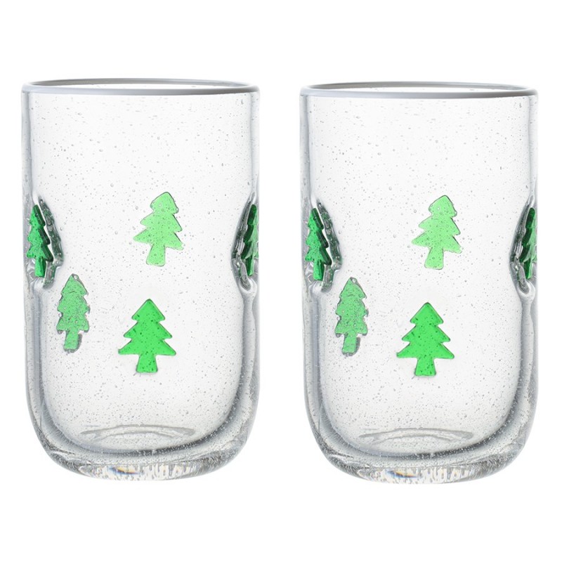 Набор стаканов Flowi Winter придется по душе тем, кому нравится создавать новогоднее настроение из необычных мелочей. Эта посуда привлекает внимание уникальным дизайном – стенки стаканов украшены интересным декором – миниатюрными стеклянными елочками.Особенности и преимущества:- Выдувное стекло – экологически чистый, устойчивый к износу материал, за которым легко ухаживать. - Благодаря особой технике производства поверхность стаканов украшают мелкие пузырьки, которые придают им неповторимый вид. - Такая посуда подойдет для подачи сока, морса, лимонада.Материалы: выдувное стекло. Размеры: диаметр – 7,8 см, ширина основания – 4,5 см, высота – 13 см. Объем: 510 мл. Количество в наборе: 2 шт.Можно мыть вручную при помощи мягкой губки с жидким моющим средством. Запрещено мыть стаканы в посудомоечной машине.