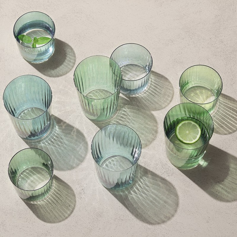 Набор из 4 стаканов Gems идеально подходит для подачи воды, сока, вина и коктейлей со льдом. Стаканы станут ярким дополнением к весенне-летней сервировке напитков дома, в баре или на открытом воздухе.Gems – коллекция из разноцветного стекла, которая станет ярким дополнением к любому столу. При создании посуды дизайнеры вдохновлялись красотой переливающихся на солнце жемчужин. Линейка представлена наборами из 4 стаканов в трех цветовых гаммах и двух размерах. Изделия выполнены вручную в разных оттенках из выдувного стекла изумрудного, янтарного и гранатового цвета. Рифленая текстура бокалов отражает солнечный свет и создает красочный эффект блеска.Важно! Поскольку изделия изготавливаются вручную, их размеры могут незначительно отличаться и допускается наличие пузырьков в толще стекла: круглые < 3 мм, овальные < 5 мм и их небольшие скопления в виде пены. Также возможно наличие прожилок (видимых нитей) на стекле менее 50% длины окружности любого предмета. Все это не брак, а допустимые индивидуальные особенности товаров, произведенных ручным способом.Материал: выдувное стекло. Объем: 560 мл. Высота: 12 см. Ширина: 9 см. Количество в наборе: 4 шт.Посуду рекомендуется мыть вручную в теплой мыльной воде, после чего протирать сухой мягкой тканью.
