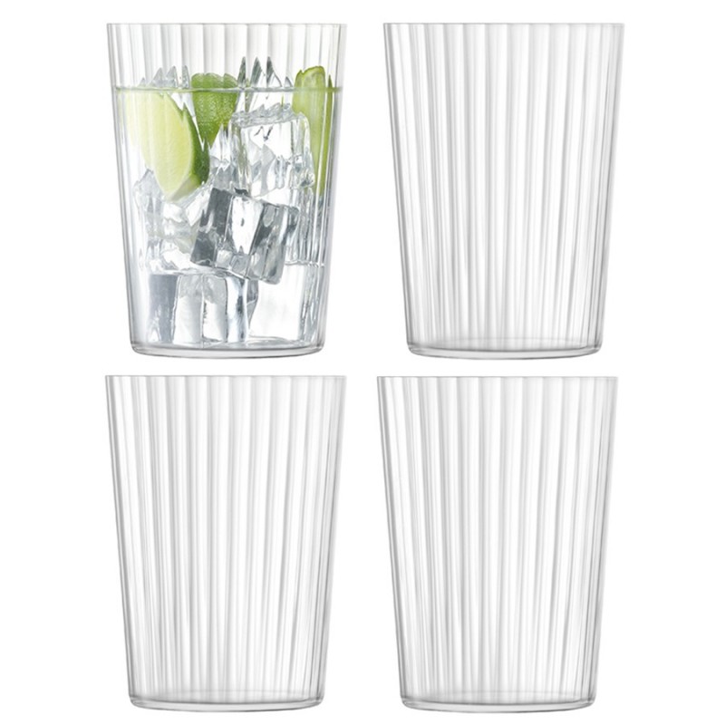 Набор из 4 стаканов Gio Line идеально подходит для подачи воды, соков и других холодных напитков.Gio Line – оригинальная коллекция аксессуаров для сервировки стола и декора кухни, столовой, гостиной или ванной комнаты. Емкости для хранения, графины, бутылки для масла и уксуса, подсвечники, вазы, тумблеры и стаканы представлены в лаконичном дизайне. Плиссированная текстура выдувного стекла создает «воздушный» образ, а солнечные лучи отражаются и преломляются на его гранях.Материал: стекло. Объем: 560 мл. Высота: 12 см. Ширина: 9 см. Количество в наборе: 4 шт.Можно мыть в посудомоечной машине при низкой температуре с использованием мягкого моющего средства.