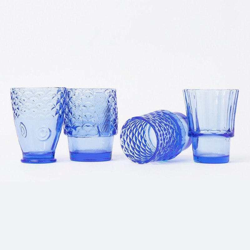 Набор стаканов Koifish идеально подходит для воды и других холодных напитков и добавит в любую сервировку нотки свежести. За счет пластичности материала при минимальной толщине стенок изделия имеют сложную и необычную фактуру, гладкую с одной стороны и рифленую – с другой. Стаканы аккуратно укдадываются друг в друга, создавая форму бутылки.Особенности и преимущества:- Легкое и тонкое содовое стекло – экологически чистый, устойчивый к износу и загрязнениям материал, который не меняет вкус и запах напитков. - Приятный голубой цвет делает посуду более привлекательной и добавляет настроение в любую сервировку. - Эргономичная форма обеспечивает удобство при использовании.Материал: содовое стекло. Размер в собранном виде: 8x8х32 см. Предметов в наборе: 4 шт. Цвет: голубой.Рекомендуется мыть вручную при помощи мягкой губки. Запрещается использование абразивных материалов и агрессивной бытовой химии.