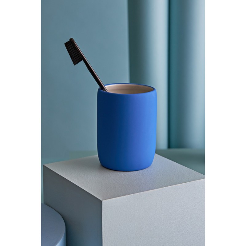 Стакан для зубных щеток Flow – идеальное сочетание стильного дизайна и практичности, которое вы искали. Он не только станет прекрасным дополнением вашей ванной комнаты, но и превратит ежедневный уход за собой в приятный ритуал. Глубокий синий оттенок делает аксессуар ярким акцентом интерьера, а покрытие софт-тач дарит тактильный комфорт.Особенности и преимущества:- Стакан выполнен из качественной керамики, что гарантирует ему долговечность, устойчивость к износу и простой уход. - Специальное покрытие дарит приятные тактильные ощущения и предотвращает скольжение. - На дне предусмотрены силиконовые ножки, которые обеспечивают дополнительную устойчивость на различных поверхностях. Они не встроены в основание товара и при необходимости легко снимаются. - Глубокий синий оттенок не только привлекает внимание, но и легко сочетается с другими цветами в интерьере.Материал: керамика. Размеры: 7,5х7,5х10 см. Цвет: синий индиго.Можно мыть вручную в теплой мыльной воде.