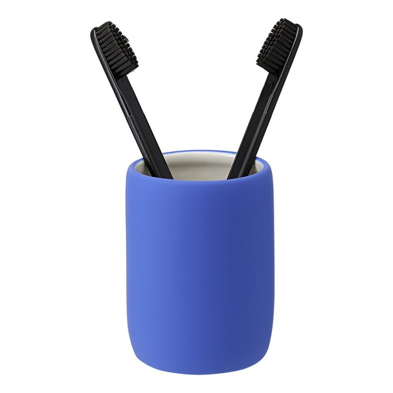 Стакан для зубных щеток Flow – идеальное сочетание стильного дизайна и практичности, которое вы искали. Он не только станет прекрасным дополнением вашей ванной комнаты, но и превратит ежедневный уход за собой в приятный ритуал. Глубокий синий оттенок делает аксессуар ярким акцентом интерьера, а покрытие софт-тач дарит тактильный комфорт.Особенности и преимущества:- Стакан выполнен из качественной керамики, что гарантирует ему долговечность, устойчивость к износу и простой уход. - Специальное покрытие дарит приятные тактильные ощущения и предотвращает скольжение. - На дне предусмотрены силиконовые ножки, которые обеспечивают дополнительную устойчивость на различных поверхностях. Они не встроены в основание товара и при необходимости легко снимаются. - Глубокий синий оттенок не только привлекает внимание, но и легко сочетается с другими цветами в интерьере.Материал: керамика. Размеры: 7,5х7,5х10 см. Цвет: синий индиго.Можно мыть вручную в теплой мыльной воде.