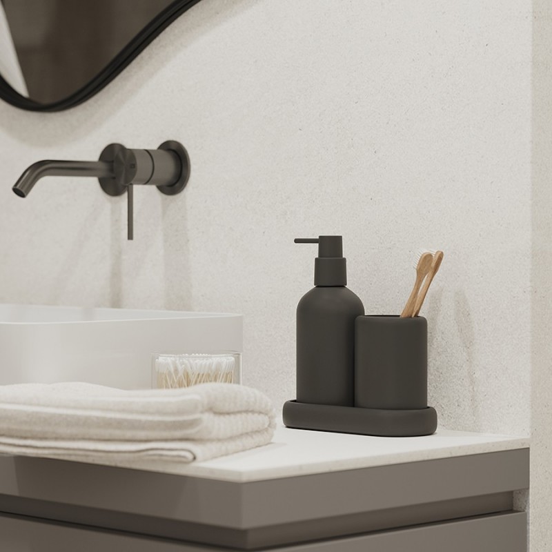 Стакан для зубных щеток Slim – прекрасное решение для поклонников скандинавского стиля и современных интерьеров, где предпочтение отдается простым формам и спокойной цветовой гамме. Выполненный из полирезина, он идеально подходит для использования в местах с повышенной влажностью, сохраняя свой первозданный вид.Особенности и преимущества:- Полирезин – прочный, легкий, непористый материал, который не впитывает влагу и загрязнения, легко очищается и не бьется при падении. - Дизайн с имитацией каменной фактуры актуален для большинства интерьерных решений: сканди, эко, бохо, лофт, минимализм и другие.Материал: полирезин. Размеры: 8,1х5,1х10,7 см. Цвет: черный.Можно очищать в теплой воде с помощью мягких моющих средств. Запрещается использование агрессивной бытовой химии и абразивных материалов.