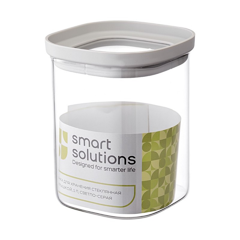 Банка стеклянная с силиконовой крышкой от бренда Smart Solutions обеспечит удобное и практичное хранение различных продуктов – крупы, макаронных изделий, сухофруктов, орехов, приправ и многого другого. Выполненная из прозрачного стекла, она прекрасно сочетается с посудой и аксессуарами из любых материалов, а также вы всегда видете, когда приходит время пополнять запасы.Особенности и преимущества:- Боросиликатное стекло устойчиво к температурным перепадам, царапинам и повреждениям, благодаря чему изделия из него долго сохраняют первозданный вид. - Материал не впитывает запахи, не вступает в реакцию с пищевыми продуктами, что делает его безопасным в использовании. - Плотно прилегающая силиконовая крышка защищает содержимое банки от попадания пыли и влаги.Материалы: боросиликатное стекло, силикон. Размеры: 11х11х14 см. Объем: 1 л. Цвет: светло-серый.Можно мыть в посудомоечной машине (без крышки).