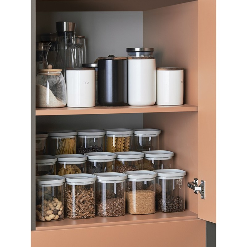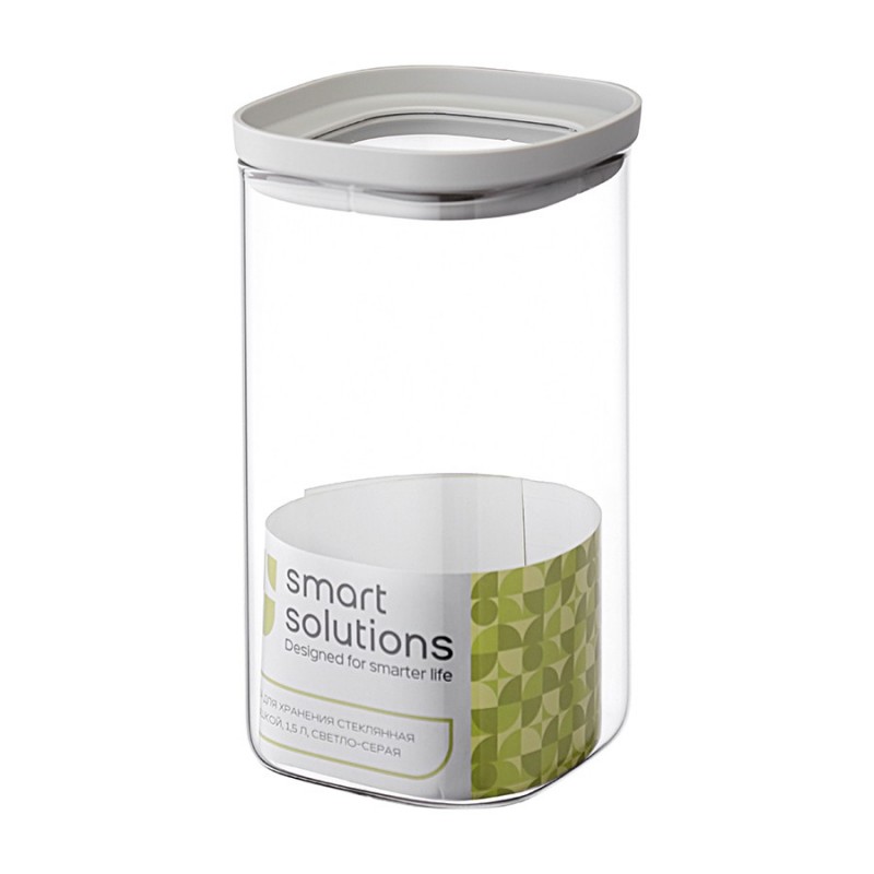 Банка стеклянная с силиконовой крышкой от бренда Smart Solutions обеспечит удобное и практичное хранение различных продуктов – крупы, макаронных изделий, сухофруктов, орехов, приправ и многого другого. Выполненная из прозрачного стекла, она прекрасно сочетается с посудой и аксессуарами из любых материалов, а также вы всегда видете, когда приходит время пополнять запасы.Особенности и преимущества:- Боросиликатное стекло устойчиво к температурным перепадам, царапинам и повреждениям, благодаря чему изделия из него долго сохраняют первозданный вид. - Материал не впитывает запахи, не вступает в реакцию с пищевыми продуктами, что делает его безопасным в использовании. - Плотно прилегающая силиконовая крышка защищает содержимое банки от попадания пыли и влаги.Материалы: боросиликатное стекло, силикон. Размеры: 11х11х19,5 см. Объем: 1,5 л. Цвет: светло-серый.Можно мыть в посудомоечной машине (без крышки).