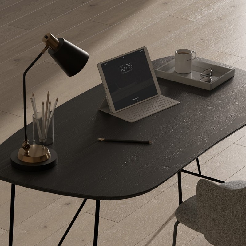 Стол письменный Ander от бренда Bergenson Bjorn поможет организовать функциональную рабочую зону в интерьере практически с любым оформлением. Модель воплощает современные тенденции, великолепно сочетаясь с различными стилевыми решениями: минимализм, лофт, фьюжн, хай-тек и другими. Качественные материалы и привлекательный дизайн делают этот предмет мебели отличным выбором для всех, кто ценит сочетание эстетики и практичности.Особенности и преимущества:- Ножки из высокопрочной стали делают конструкцию устойчивой, надежной и долговечной. - Столешница из МДФ имеет меламиновое покрытие, которое не боится царапин, воздействия влаги и сохраняет привлекательный вид долгое время. - Отсутствие острых углов придает мебели элегантный вид и гарантирует безопасную эксплуатацию. - Дизайн “под древесину дуба” привносит в оформление благородные нотки. - Комфортная посадка обеспечивается за счет оптимальной высоты стола 75 см и столешницы удобной формы.Материалы: МДФ, меламиновое покрытие, сталь. Размеры: 142,5х74х75 см. Цвет: черный.Пыль и загрязнения с поверхностей можно удалять при помощи мягкого влажного материала. Сразу после очищения стол рекомендуется протереть сухой тканью. Запрещается применение жестких щеток, абразивов и агрессивной бытовой химии.