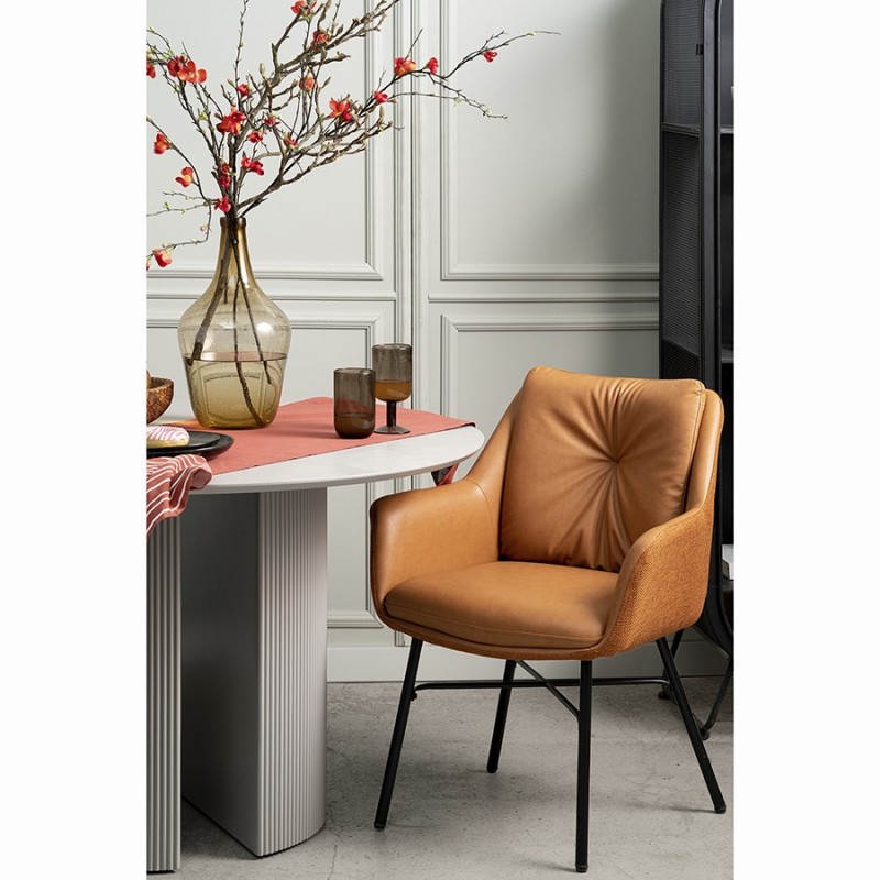 Стильный и удобный стул Allar станет идеальным дополнением вашей кухни, столовой или зоны отдыха в квартире и загородном доме. Этот предмет мебели от известного дизайнерского бренда Bergenson Bjorn воплощает современные тенденции, великолепно сочетаясь с различными вариантами отделки.Особенности конструкции модели обеспечивают комфортную посадку и поддержку спины. Сиденье с мягким пенополиуретановым наполнителем и наличие приспинной подушки создают условия для длительного использования без чувства усталости. Внутри обивка выполнена из экокожи, снаружи стул отделан рогожкой. Такое сочетание материалов делает дизайн интересным, а мебель практичной и долговечной. Ножки из прочной стали гарантируют конструкции надежность и устойчивость.Благодаря лаконичным формам и нейтральному оттенку стул Allar гармонично вписывается в большинство популярных стилевых направлений, среди которых неоклассика, лофт, фьюжн, сканди, хай-тек и другие.Материалы: 100% полиэстер, полиуретан, фанера, пенополиуретан, сталь. Размеры: 58х52х85 см. Высота сиденья: 47,5 см. Высота подушки сиденья: 10 см. Ширина сиденья: 45 см. Глубина сиденья: 46 см. Высота спинки: 42 см. Ширина спинки: 42 см. Максимальная нагрузка: 120 кг. Цвет: коричневый.Любые загрязнения с обивки из экокожи рекомендуется убирать сразу при помощи влажной ткани. Засохшую грязь требуется сначала размочить, после чего удалить мягким материалом. Пятна с обивки из рогожки можно убирать губкой с мыльным раствором воды. Запрещается применение жестких щеток, абразивов и агрессивной бытовой химии.