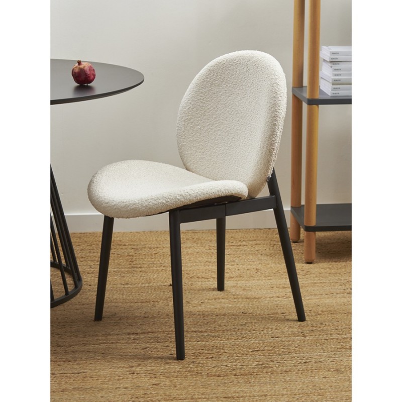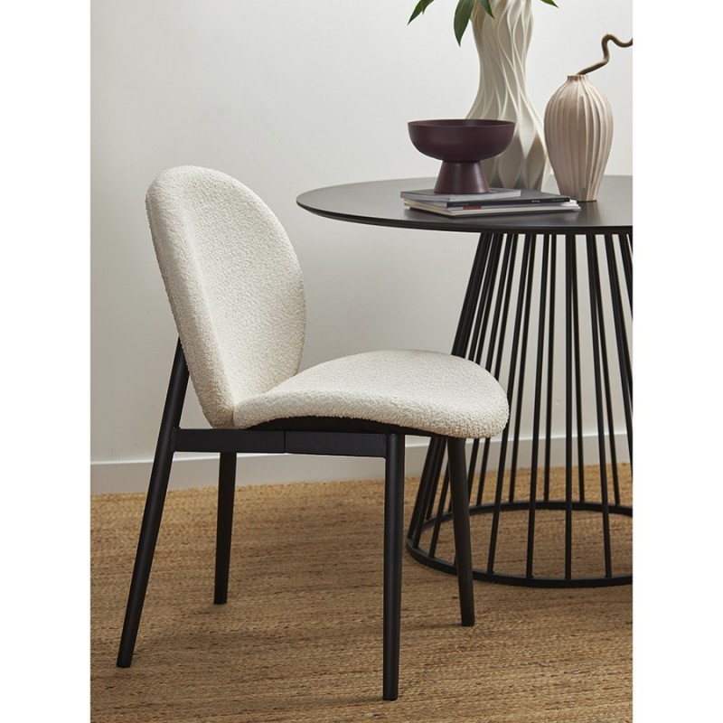 Мебель с буклированной обивкой делает пространство более уютным и привносит в дизайн интерьера французский шарм. Стул Bente – прекрасный вариант для всех, кто любит быть в тренде и внимательно относится к деталям.Стул имеет удобную посадку за счет глубокого сиденья эргономичной формы и высокой спинки. Ножки мебели изготовлены из железа с устойчивым к коррозии и повреждениям порошковым покрытием. Состоящая из мелких узелков ткань обивки с приятной фактурой дарит тактильный комфорт и визуально смягчает любую интерьерную композицию. Материал не требует сложного ухода и долго сохраняет привлекательный вид.Стул подходит для обустройства обеденной зоны, пространства для отдыха, отлично смотрится в гостиной, спальне, детской. Дизайн модели актуален для большинства популярных интерьерных стилей, среди которых фьюжн, сканди, поп-арт, шебби-шик, прованс и другие.Материалы: 100% полиэстер, фанера, пенополиуретан, железо. Размеры: 49х62х86 см. Высота сиденья: 48 см. Ширина сиденья: 48 см. Глубина сиденья: 48 см. Высота спинки: 45 см. Ширина спинки: 48 см. Максимальная нагрузка: 120 кг. Цвет: молочно-белый.Рекомендуется регулярно пылесосить мебель с помощью специальной насадки. Загрязнения можно удалять при помощи мягкой влажной ткани или губки с мыльным раствором воды.