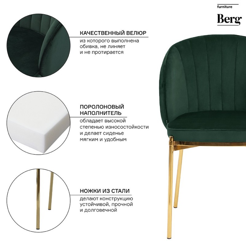 Стул Coral создаст условия для погружения в мир комфорта и элегантности и поможет придать интерьеру изысканный вид. Этот стильный предмет мебели станет идеальным дополнением пространства кухни, столовой, кабинета, спальни и гостиной.Комфорт во время отдыха на стуле создается за счет мягкого сиденья с наполнителем из пенополиуретана и высокой закругленной спинки. Обивка из бархатистого велюра, украшенная декоративной строчкой, придает модели особый шарм. Эстетический потенциал материала настолько высок, что ему сложно найти конкурентов. Помимо презентабельного вида и приятных тактильных ощущений, ткань обладает хорошими эксплуатационными характеристиками, такими как прочность, износоустойчивость и долговечность. Ножки мебели выполнены из стали, что обеспечивает конструкции надежность и защиту от коррозии.Стул Coral станет отличным выбором для поклонников стилей поп-арт, неоклассика, гранж, прованс, фьюжн или лаунж.Материалы: сталь, фанера, 100% полиэстер, пенополиуретан. Высота сиденья: 43 см. Ширина сиденья: 49,5 см. Глубина сиденья: 43 см. Высота спинки: 35,5 см. Ширина спинки: 44 см. Высота подлокотников: 27 см. Максимальная нагрузка: 120 кг. Цвет: зеленый.Рекомендуется регулярно пылесосить мебель с помощью специальной насадки – резиновой или мягкой щетки. Образовавшиеся пятна можно удалять губкой или салфеткой со слабым мыльным раствором воды. Запрещается использовать абразивные материалы и агрессивную бытовую химию.