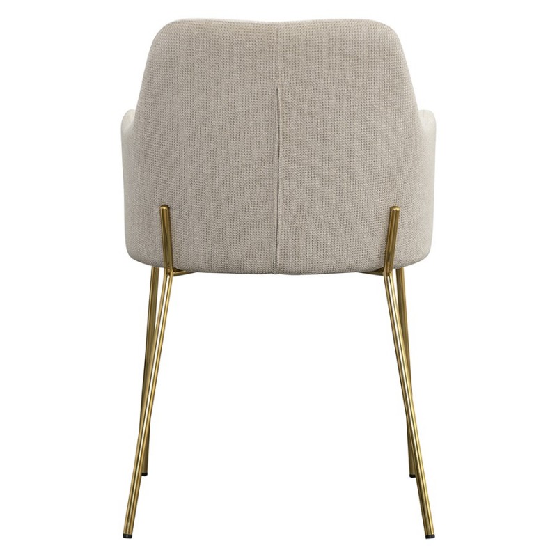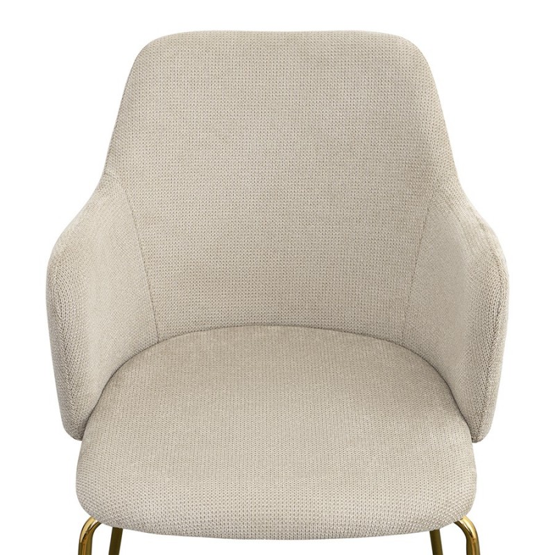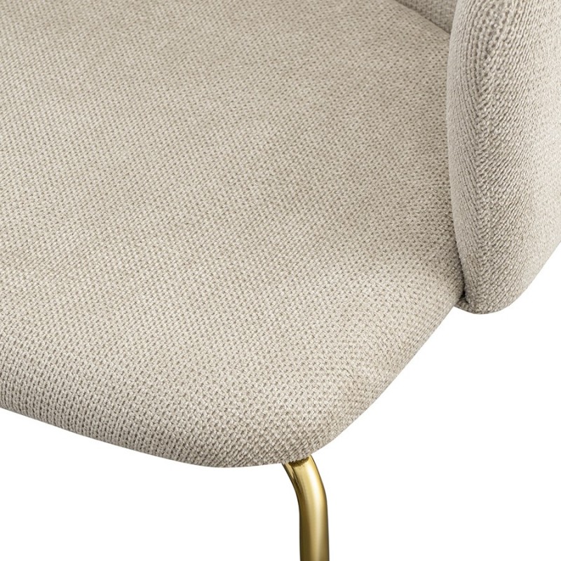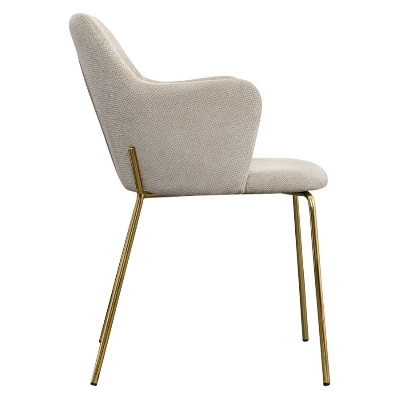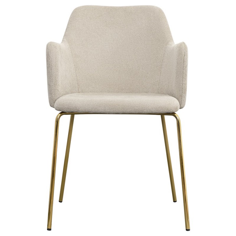 Стул Dwight приятного светло-бежевого оттенка великолепно дополнит обеденную зону на кухне или в столовой, украсит пространство гостиной, спальни и рабочего кабинета. За счет минималистичного дизайна модель актуальна для большинства интерьерных стилей.Конструкция надежна, прочна и долговечна. Комфорт при сидении достигается за счет глубокой посадки и широкой спинки, плавно переходящей в подлокотники. Ножки из стали расположены под определенным углом для хорошей устойчивости. Обивка из шенилла с ярко выраженной фактурой обеспечивает мебели привлекательный вид. Материал мягкий, приятный на ощупь и обладает отличными износостойкими характеристиками – не скатывается, не протирается и несложный в уходе.Материалы: полиэстер, нейлон, фанера, сталь, поролон. Высота сиденья: 45 см. Ширина сиденья: 47 см. Глубина сиденья: 44,5 см. Высота спинки: 40 см. Ширина спинки: 44 см. Высота подлокотников: 21,5 см. Максимальная нагрузка: 120 кг. Цвет: светло-бежевый.Истираемость ткани по шкале Мартиндейла: 40000. Цветоустойчивость: 4 единиц. Плотность ткани: 370 GSM.Рекомендуется регулярно пылесосить мебель с помощью специальной насадки или проводить сухую чистку мягкой щеткой. Образовавшиеся пятна можно удалять губкой или салфеткой с мыльным раствором воды. Запрещается использовать абразивные материалы и агрессивную бытовую химию.