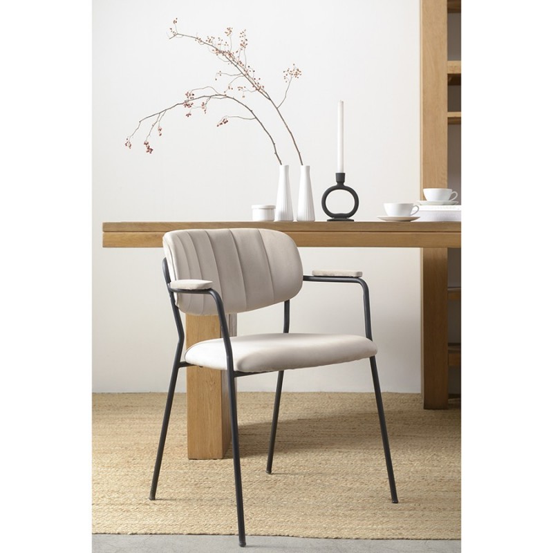 Стул Eirill с обивкой из мягкого, бархатистого велюра смотрится стильно и благородно. Материал приятный на ощупь, износостойкий и нетребовательный в уходе. Комфорт при сидении достигается за счет широкой, полукруглой спинки, глубокой посадки и высоких подлокотников с мягкими накладками. Плавные формы и декоративная строчка делают дизайн элегантным. Практичность и долговечность мебели обеспечивает прочный и надежный железный каркас. Модель органично вписывается в интерьер, оформленный в скандинавском стиле, эклектика, фьюжн, неоклассика и др.Материалы: 100% полиэстер, фанера, железо, пенополиуретан. Размеры: 59x53x77 см. Высота сиденья: 48 см. Ширина сиденья: 45 см. Глубина сиденья: 44 см. Высота спинки: 30 см. Ширина спинки: 40 см. Максимальная нагрузка: 120 кг. Цвет: серо-бежевый.Рекомендуется регулярно пылесосить мебель с помощью специальной насадки. Загрязнения можно удалять при помощи мягкой влажной ткани или губки с мыльным раствором воды.