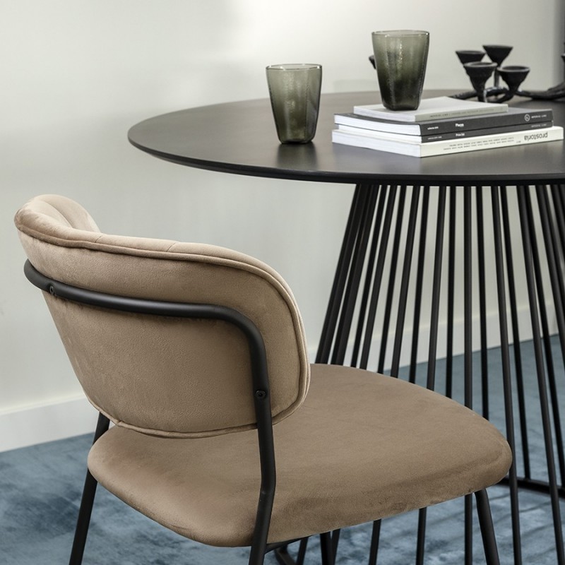 Стул Eirill с обивкой из мягкого, бархатистого велюра смотрится стильно и благородно. Материал приятный на ощупь, износостойкий и нетребовательный в уходе. Комфорт при сидении достигается за счет широкой, полукруглой спинки, глубокой посадки и высоких подлокотников с мягкими накладками. Плавные формы и декоративная строчка делают дизайн элегантным. Практичность и долговечность мебели обеспечивает прочный и надежный железный каркас. Модель органично вписывается в интерьер, оформленный в скандинавском стиле, эклектика, фьюжн, неоклассика и др.Материалы: 100% полиэстер, фанера, железо, поролон. Размеры: 59x53x77 см. Высота сиденья: 48 см. Ширина сиденья: 45 см. Глубина сиденья: 44 см. Высота спинки: 30 см. Ширина спинки: 40 см. Максимальная нагрузка: 120 кг. Цвет: светло-коричневый.Рекомендуется регулярно пылесосить мебель с помощью специальной насадки. Загрязнения можно удалять при помощи мягкой влажной ткани или губки с мыльным раствором воды.