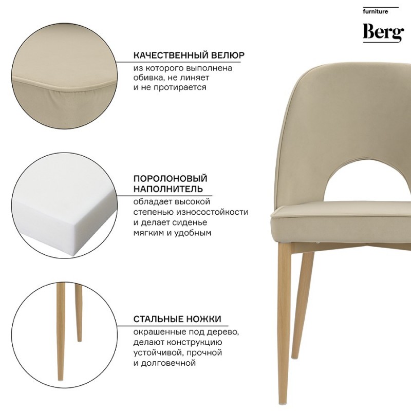 Стул evelyn, велюр, бежевый (артикул 2466)