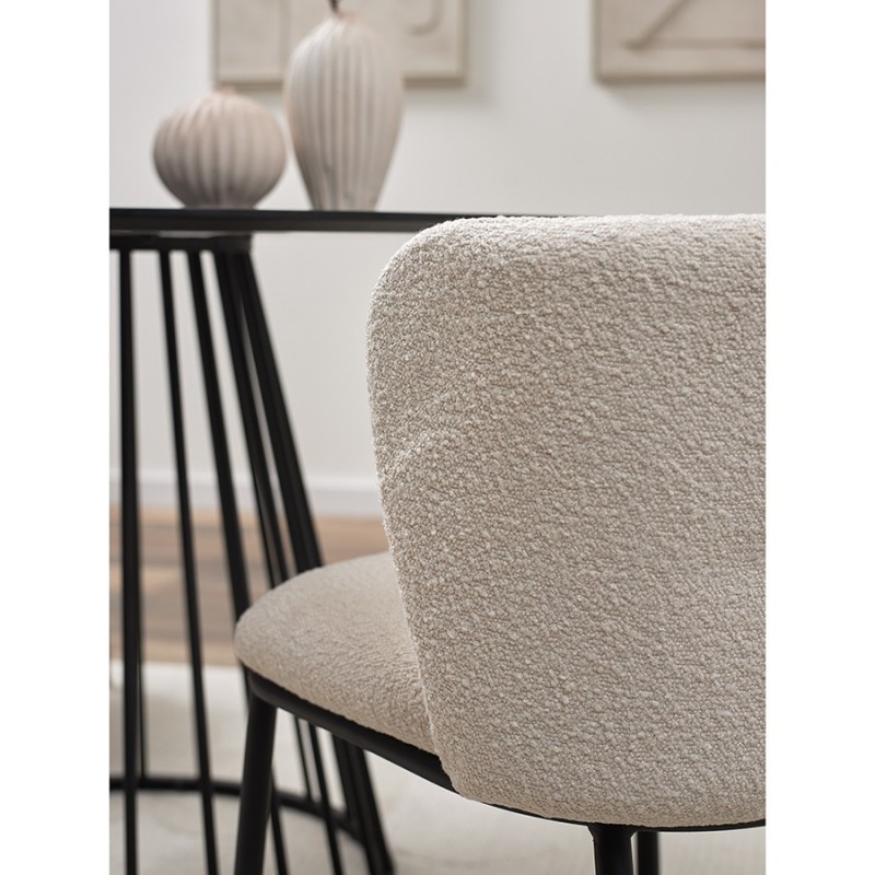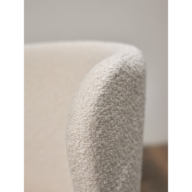 Стул Foggy поможет превратить ваш дом в уютное пространство, где каждая деталь приносит радость и вдохновение. Мягкие завитки обивки “букле” создают изящный силуэт с ноткой игривости. Каждое прикосновение к ткани приносит ощущение легкости и нежности, словно вы сидите на облаке.Особенности и преимущества:- Обивка из буклированной ткани придает мебели элегантный и уютный вид, не требует сложного ухода и долго сохраняет первоначальные свойства. - Мягкое сиденье с наполнителем из пенополиуретана и высокая, закругленная спинка позволяют долго сидеть на стуле без чувства усталости. - Ножки из прочного железа имеют износостойкое порошковое покрытие, которое защищает их поверхность от коррозии и внешних воздействий. - Стул Foggy прекрасно подходит как для классических, так и современных интерьеров.Материалы: железо, фанера, 100% полиэстер, пенополиуретан. Размеры: 52х53х77 см. Высота сиденья: 42 см. Ширина сиденья: 46 см. Глубина сиденья: 42 см. Высота спинки: 28,5 см. Ширина спинки: 44 см. Высота подлокотников: 29 см. Максимальная нагрузка: 120 кг. Цвет: молочный.Рекомендуется регулярно пылесосить мебель с помощью специальной насадки – резиновой или мягкой щетки. Образовавшиеся пятна можно удалять губкой или салфеткой со слабым мыльным раствором воды. Запрещается использовать абразивные материалы и агрессивную бытовую химию.