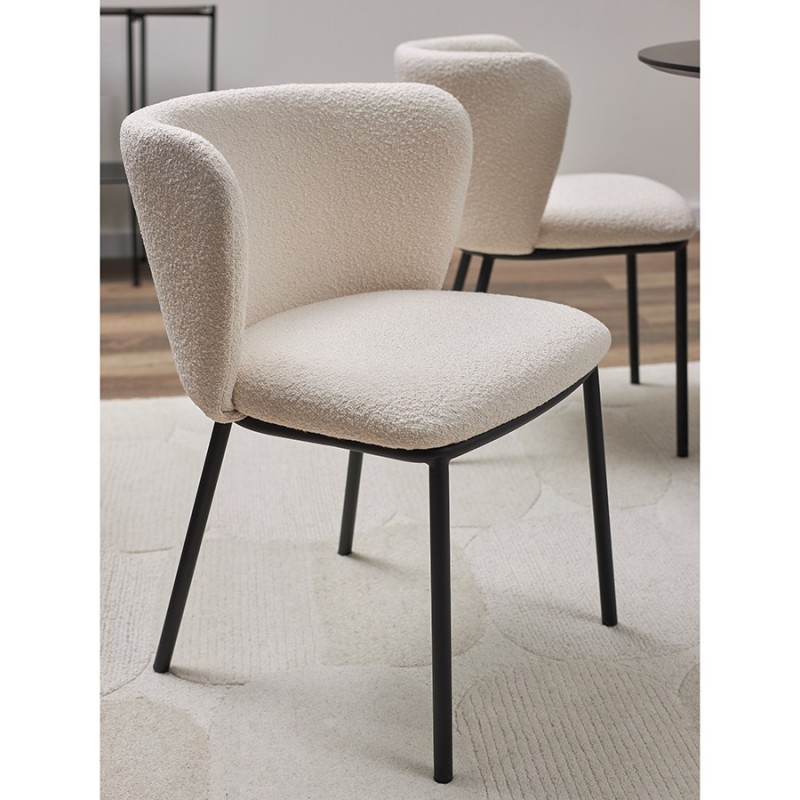 Стул Foggy поможет превратить ваш дом в уютное пространство, где каждая деталь приносит радость и вдохновение. Мягкие завитки обивки “букле” создают изящный силуэт с ноткой игривости. Каждое прикосновение к ткани приносит ощущение легкости и нежности, словно вы сидите на облаке.Особенности и преимущества:- Обивка из буклированной ткани придает мебели элегантный и уютный вид, не требует сложного ухода и долго сохраняет первоначальные свойства. - Мягкое сиденье с наполнителем из пенополиуретана и высокая, закругленная спинка позволяют долго сидеть на стуле без чувства усталости. - Ножки из прочного железа имеют износостойкое порошковое покрытие, которое защищает их поверхность от коррозии и внешних воздействий. - Стул Foggy прекрасно подходит как для классических, так и современных интерьеров.Материалы: железо, фанера, 100% полиэстер, пенополиуретан. Размеры: 52х53х77 см. Высота сиденья: 42 см. Ширина сиденья: 46 см. Глубина сиденья: 42 см. Высота спинки: 28,5 см. Ширина спинки: 44 см. Высота подлокотников: 29 см. Максимальная нагрузка: 120 кг. Цвет: молочный.Рекомендуется регулярно пылесосить мебель с помощью специальной насадки – резиновой или мягкой щетки. Образовавшиеся пятна можно удалять губкой или салфеткой со слабым мыльным раствором воды. Запрещается использовать абразивные материалы и агрессивную бытовую химию.