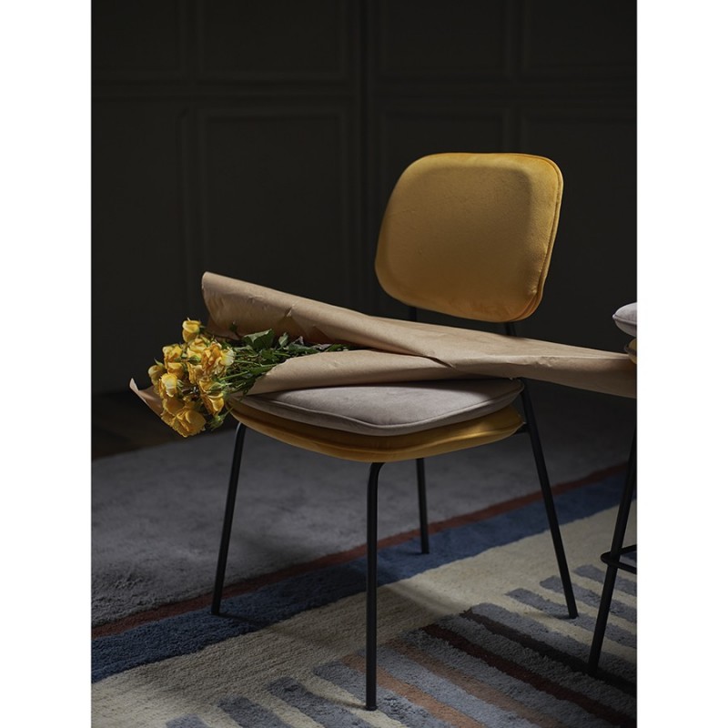 Стул Pea с мягкой обивкой из бархатистого велюра станет настоящим украшением интерьера и идеальным выбором для ценителей качественной и элегантной мебели.Особенности и преимущества:- Обивка из велюра создает приятные тактильные ощущения, смотрится презентабельно, придавая мебели изысканный вид. - Удобное сиденье с наполнителем из пенополиуретана и спинка с мягкой обивкой обеспечивают комфортную посадку. - Ножки из железа имеют порошковое покрытие, которое защищает их поверхность от коррозии, потускнения цвета и механических повреждений. - Стабильная и прочная конструкция делает стул устойчивым, надежным и долговечным. - Дизайн актуален для классических и современных стилевых направлений.Перефразируя слова известного британского дизайнера Уильяма Морриса, дом – это не место для бесполезных и некрасивых вещей, и уникальная коллекция Pea является ярким тому подтверждением. В ее основе лежит сказка “Принцесса на горошине”, и ее главная цель – пробудить ребенка в каждом из нас. Мы верим, что предметы должны быть не просто функциональными, но и нести в себе определенный смысл. Поэтому мебель из нашей новой коллекции не только приносит комфорт в ваш дом, но и рассказывает захватывающую историю.Первыми товарами линейки стали предметы мебели для спальни, сегодня она уже включает в себя пуфы, банкетки и стулья. Главный мотив – двойная подушка, которая напоминает нам о сказочном испытании принцессы. Основные особенности коллекции – пуговицы-горошины, подушки квадратной формы с закругленными краями и оригинальные ножки в виде перевернутой буквы Y, которые делают дизайн живым и непринужденным.Материалы: 100% полиэстер, пенополиуретан, фанера (береза), железо. Размеры: 49,5х49х82 см. Высота сиденья: 48 см. Ширина сиденья: 47 см. Глубина сиденья: 45 см. Высота спинки: 29,5 см. Ширина спинки: 30 см. Цвет: желтый/бежевый. Максимальная нагрузка: 150 кг.Рекомендуется регулярно пылесосить мебель с помощью специальной насадки – резиновой или мягкой щетки. Образовавшиеся пятна можно удалять губкой или салфеткой со слабым мыльным раствором воды. Запрещается использовать абразивные материалы и агрессивную бытовую химию.