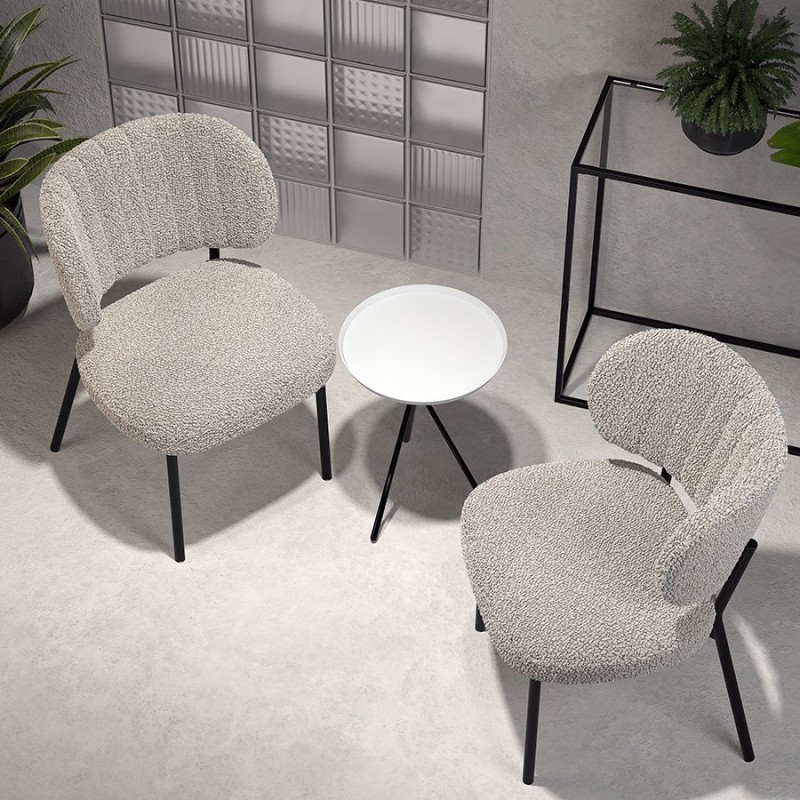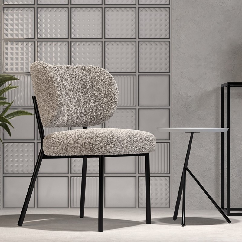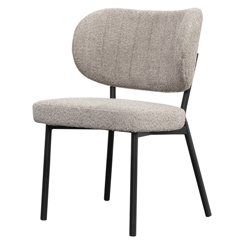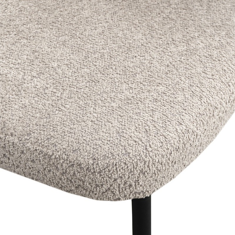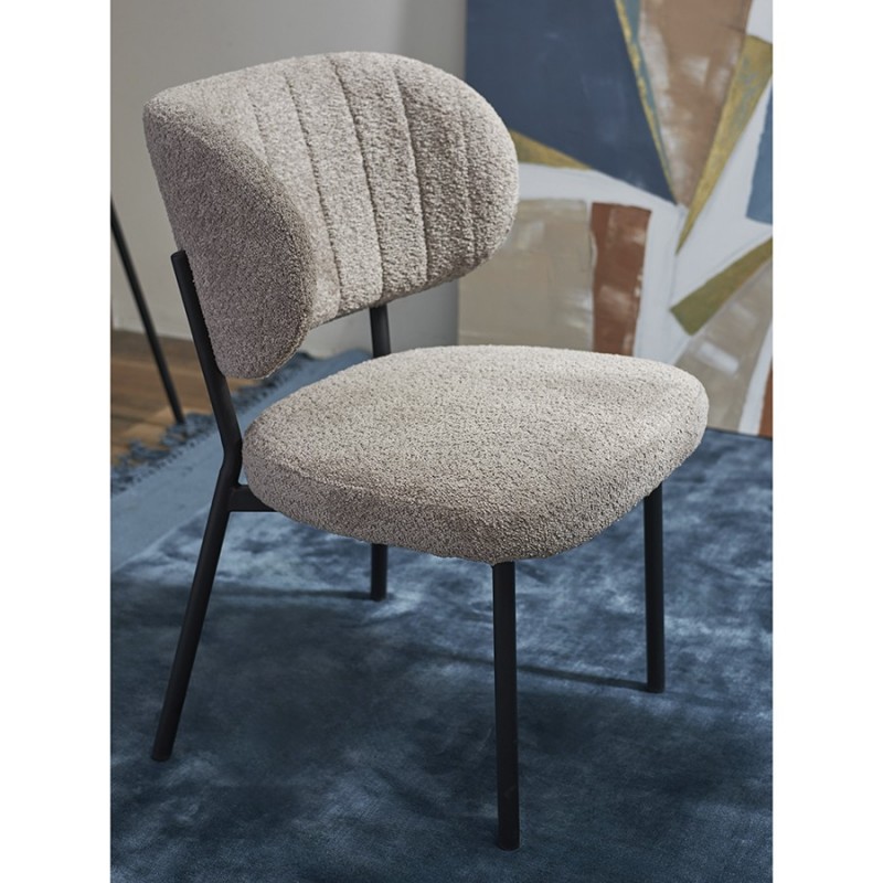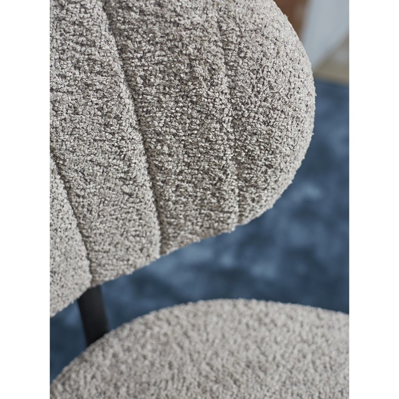 Стул Robbi с буклированной обивкой идеально впишется в интерьер, вдохновленный провансом и стилем кантри, а также станет интересным акцентом в любом современном пространстве.Особенности и преимущества:- Обивка из буклированной ткани придает мебели винтажный шарм, делая ее невероятно привлекательной и уютной. - Мягкие спинка и сиденье с наполнителем из пенополиуретана обеспечивают максимальный комфорт во время отдыха на стуле. - Железные ножки имеют износостойкое порошковое покрытие, которое защищает их поверхность от коррозии и повреждений.Материалы: 100% полиэстер, фанера, железо, пенополиуретан. Размеры: 55х64х84,5 см. Высота сиденья: 47 см. Максимальная нагрузка: 120 кг. Цвет: серо-бежевый.Рекомендуется регулярно пылесосить мебель с помощью специальной насадки. Загрязнения можно удалять при помощи мягкой влажной ткани или губки с мыльным раствором воды.