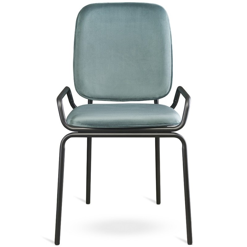 Коллекция Ror – это мебель с индивидуальным характером. Отправной точкой создания линейки стало динамичное движение, воплощенное в логотипе Олимпиады 80, где беговые дорожки образуют силуэт Спасской башни.Стул Double Frame имеет удобную посадку за счет высокой спинки и широкого сиденья. Отсутствие острых углов создает легкий, гармоничный силуэт. Стальной каркас с порошковым покрытием делает конструкцию прочной и надежной, а мягкий велюр с бархатистой текстурой обеспечивает тактильный комфорт. Ткань обивки обладает высокими показателями износостойкости. Используемый в качестве наполнителя пенополиуретан отличается комфортной плотностью и жесткостью. Все материалы отвечают высоким стандартам практичности, долговечности и экологической безопасности.Стул украсит собой любой современный интерьер: подойдет для оформления обеденной группы, рабочего пространства или зоны отдыха.Материалы: сталь, фанера, 100% пенополиуретан, 100% полиэстер. Размеры: 50х61х84 см. Высота сиденья: 47 см. Ширина сиденья: 40 см. Глубина сиденья: 38 см. Высота спинки: 39 см. Ширина спинки: 37 см. Максимальная нагрузка: 102 кг. Цвет: черный/зеленый.Загрязнения удалять с поверхностей мыльным раствором воды при помощи мягкой губки или салфетки.
