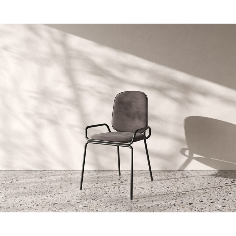 Коллекция Ror - это мебель с индивидуальным характером.Стул Double Frame имеет удобную посадку за счет высокой спинки и широкого сиденья. Отсутствие острых углов создает легкий, гармоничный силуэт. Стальной каркас с порошковым покрытием делает конструкцию прочной и надежной, а мягкий велюр с бархатистой текстурой обеспечивает тактильный комфорт. Ткань обивки обладает высокими показателями износостойкости. Используемый в качестве наполнителя пенополиуретан отличается комфортной плотностью и жесткостью. Все материалы отвечают высоким стандартам практичности, долговечности и экологической безопасности. Стул украсит собой любой современный интерьер: подойдет для оформления обеденной группы, рабочего пространства или зоны отдыха.Материалы: сталь, фанера, 100% пенополиуретан, 100% полиэстер. Размеры: 50х61х84 см. Высота сиденья: 47 см. Ширина сиденья: 40 см. Глубина сиденья: 38 см. Высота спинки: 39 см. Ширина спинки: 37 см. Максимальная нагрузка: 102 кг. Цвет: черный/серый.Загрязнения удалять с поверхностей мыльным раствором воды при помощи мягкой губки или салфетки.