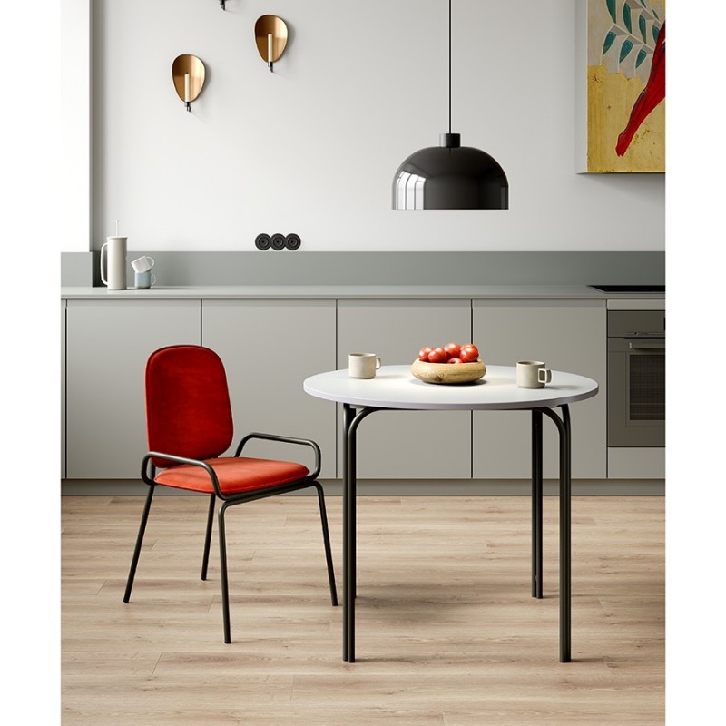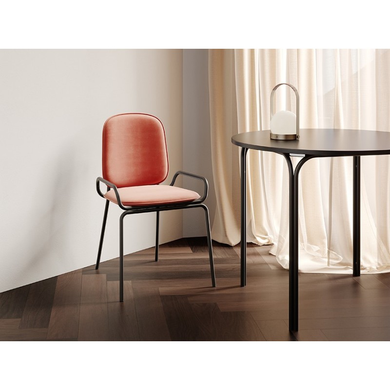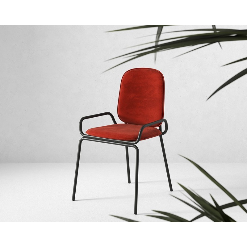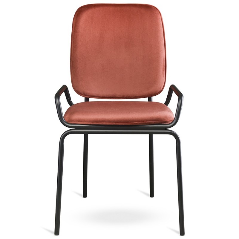 Коллекция Ror - это мебель с индивидуальным характером.Стул Double Frame имеет удобную посадку за счет высокой спинки и широкого сиденья. Отсутствие острых углов создает легкий, гармоничный силуэт. Стальной каркас с порошковым покрытием делает конструкцию прочной и надежной, а мягкий велюр с бархатистой текстурой обеспечивает тактильный комфорт. Ткань обивки обладает высокими показателями износостойкости. Используемый в качестве наполнителя пенополиуретан отличается комфортной плотностью и жесткостью. Все материалы отвечают высоким стандартам практичности, долговечности и экологической безопасности. Стул украсит собой любой современный интерьер: подойдет для оформления обеденной группы, рабочего пространства или зоны отдыха.Материалы: сталь, фанера, 100% пенополиуретан, 100% полиэстер. Размеры: 50х61х84 см. Высота сиденья: 47 см. Ширина сиденья: 40 см. Глубина сиденья: 38 см. Высота спинки: 39 см. Ширина спинки: 37 см. Максимальная нагрузка: 102 кг. Цвет: черный/темно-красный.Загрязнения удалять с поверхностей мыльным раствором воды при помощи мягкой губки или салфетки.