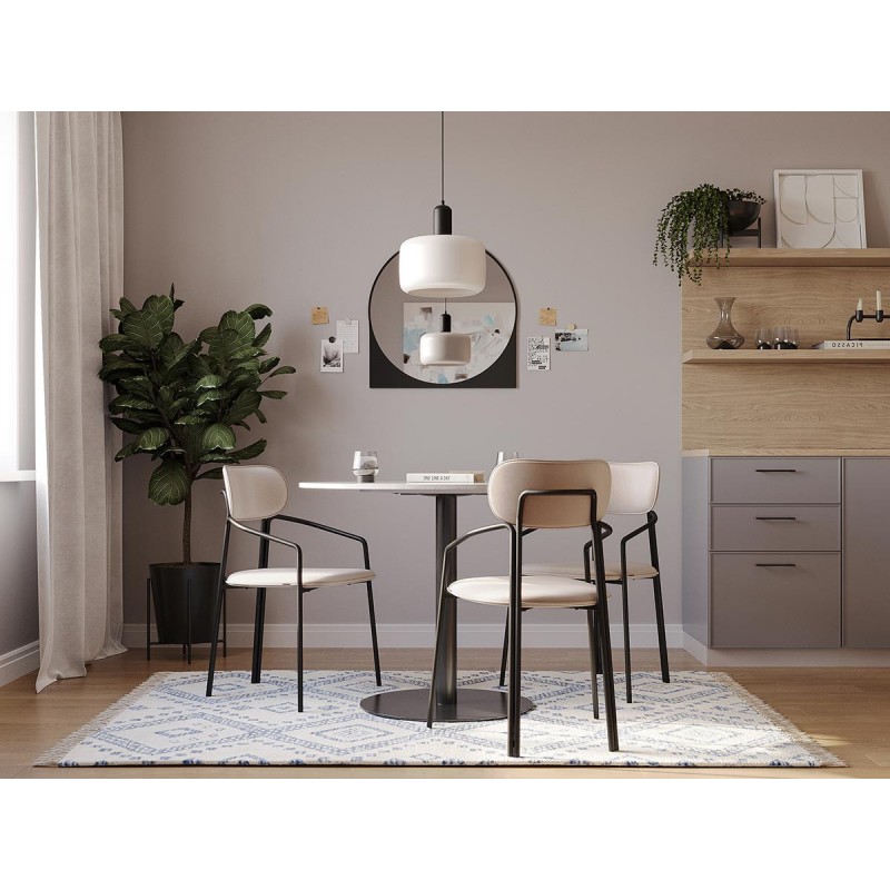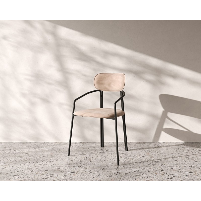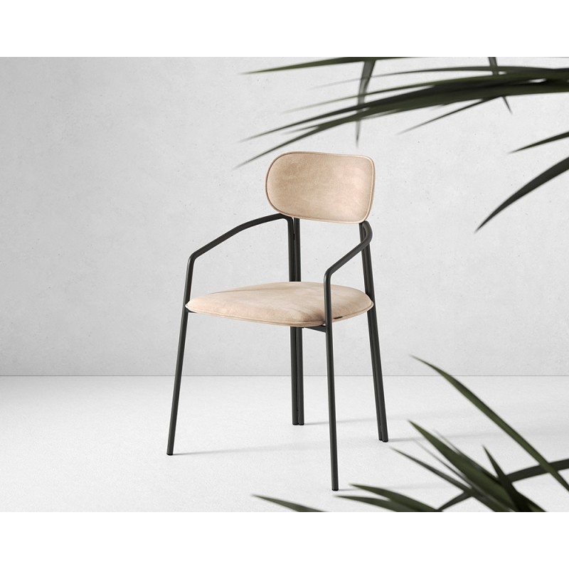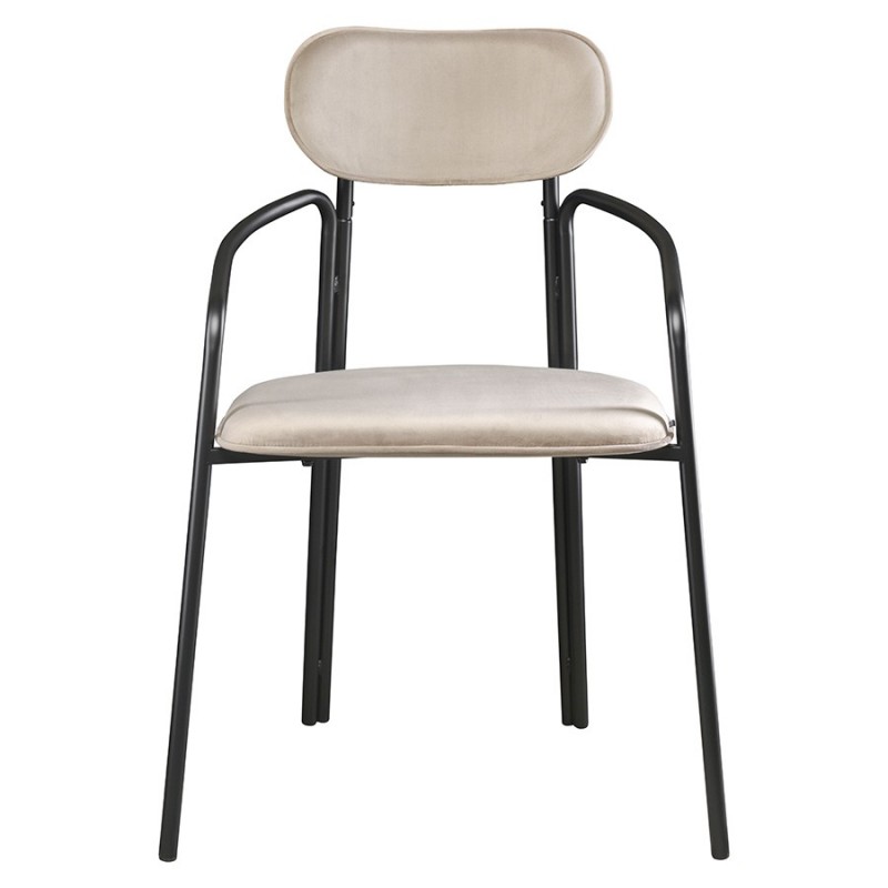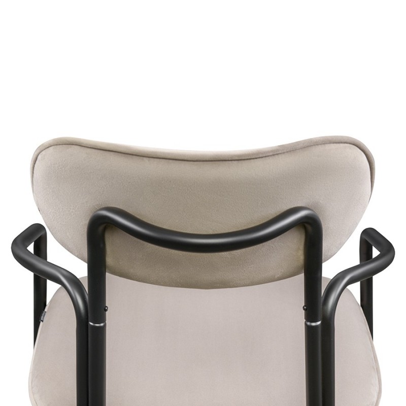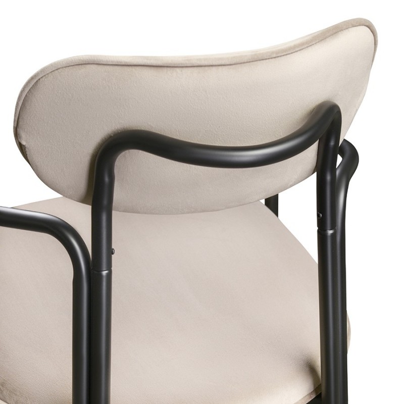 Коллекция Ror - это мебель с индивидуальным характером.Каркас стула Round состоит из трех стремящихся вверх элементов, которые образуют округлый, словно окутывающий корпус. За счет отсутствия прямых углов создается легкий, гармоничный силуэт. Стальное основание с порошковым покрытием делает конструкцию прочной и надежной, а мягкий велюр с бархатистой текстурой обеспечивает тактильный комфорт. Ткань обивки обладает высокими показателями износостойкости. Используемый пенополиуретан отличается комфортной плотностью и жесткостью. Все материалы отвечают высоким стандартам практичности, долговечности и экологической безопасности. Стул украсит собой любой современный интерьер: подойдет для оформления обеденной группы, рабочего пространства или зоны отдыха.Материалы: сталь, фанера, 100% пенополиуретан, 100% полиэстер. Размеры: 50х58х83 см. Высота сиденья: 45 см. Ширина сиденья: 44 см. Глубина сиденья: 45 см. Высота спинки: 37 см. Ширина спинки: 38 см. Максимальная нагрузка: 102 кг. Цвет: черный/бежевый.Загрязнения удалять с поверхностей мыльным раствором воды при помощи мягкой губки или салфетки.
