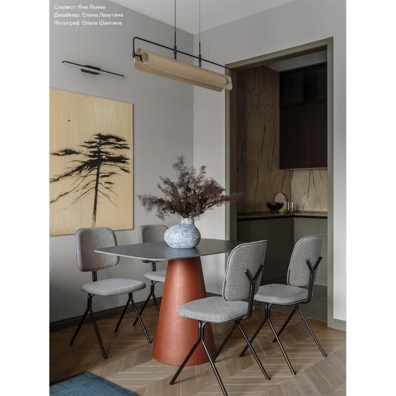 Коллекция Ror – это мебель с индивидуальным характером. Отправной точкой создания линейки стало динамичное движение, воплощенное в логотипе Олимпиады 80, где беговые дорожки образуют силуэт Спасской башни.Стул Y имеет удобную посадку за счет высокой спинки и глубокого сиденья. Необычные ножки, расположенные под определенным углом, делают дизайн интересным и обеспечивают конструкции устойчивость. Плавные, скругленные формы создают легкий, гармоничный силуэт.Стальной каркас с порошковым покрытием делает стул прочным и надежным, а меланжевая ткань обивки обладает высокими показателями износостойкости. Используемый в качестве наполнителя пенополиуретан отличается комфортной плотностью и жесткостью. Все материалы отвечают высоким стандартам практичности, долговечности и экологической безопасности.Стул украсит собой любой современный интерьер: подойдет для оформления обеденной группы, рабочего пространства или зоны отдыха.Материалы: сталь, фанера, 100% пенополиуретан, 100% полиэстер. Размеры: 43,9х46,9х86,5 см. Максимальная нагрузка: 102 кг. Цвет: черный/серый.Загрязнения удалять с поверхностей мыльным раствором воды при помощи мягкой губки или салфетки.