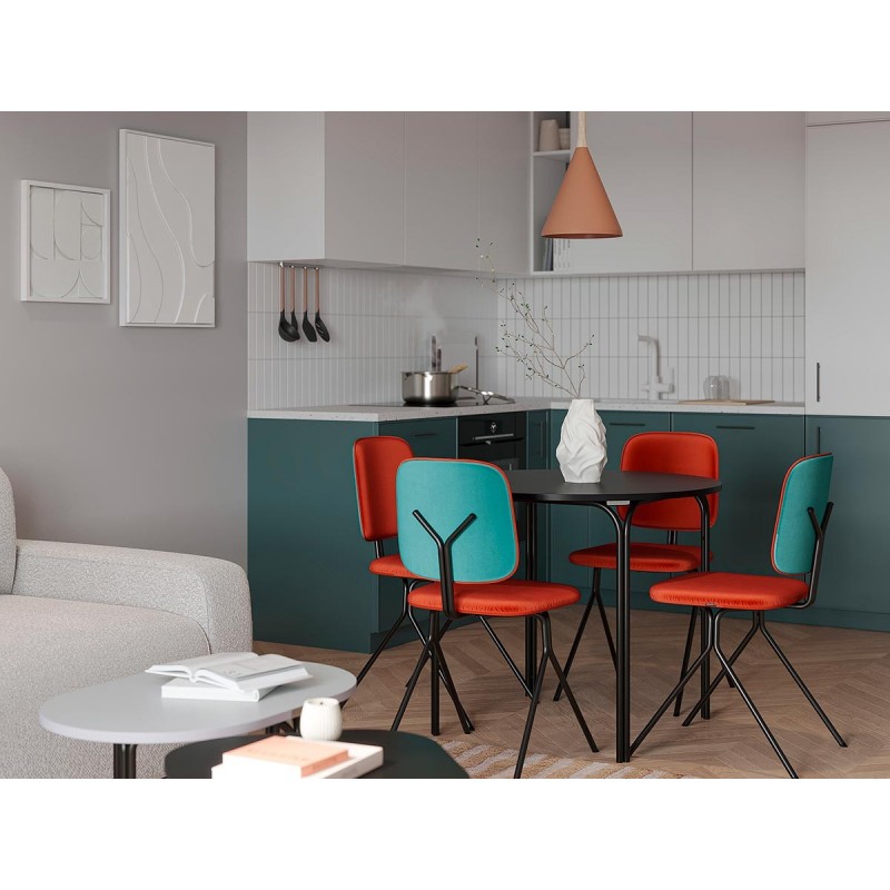 Коллекция Ror – это мебель с индивидуальным характером. Отправной точкой создания линейки стало динамичное движение, воплощенное в логотипе Олимпиады 80, где беговые дорожки образуют силуэт Спасской башни.Стул Y имеет удобную посадку за счет высокой спинки и глубокого сиденья. Необычные ножки, расположенные под определенным углом, делают дизайн интересным и обеспечивают конструкции устойчивость. Плавные, скругленные формы создают легкий, гармоничный силуэт.Стальной каркас с порошковым покрытием делает стул прочным и надежным, а мягкий велюр с бархатистой текстурой обеспечивает тактильный комфорт. Используемый в качестве наполнителя пенополиуретан отличается комфортной плотностью и жесткостью. Все материалы отвечают высоким стандартам практичности, долговечности и экологической безопасности.Стул украсит собой любой современный интерьер: подойдет для оформления обеденной группы, рабочего пространства или зоны отдыха.Материалы: сталь, фанера, 100% пенополиуретан, 100% полиэстер. Размеры: 43,9х46,9х86,5 см. Максимальная нагрузка: 102 кг. Цвет: черный/темно-красный/зелено-синий.Загрязнения удалять с поверхностей мыльным раствором воды при помощи мягкой губки или салфетки.