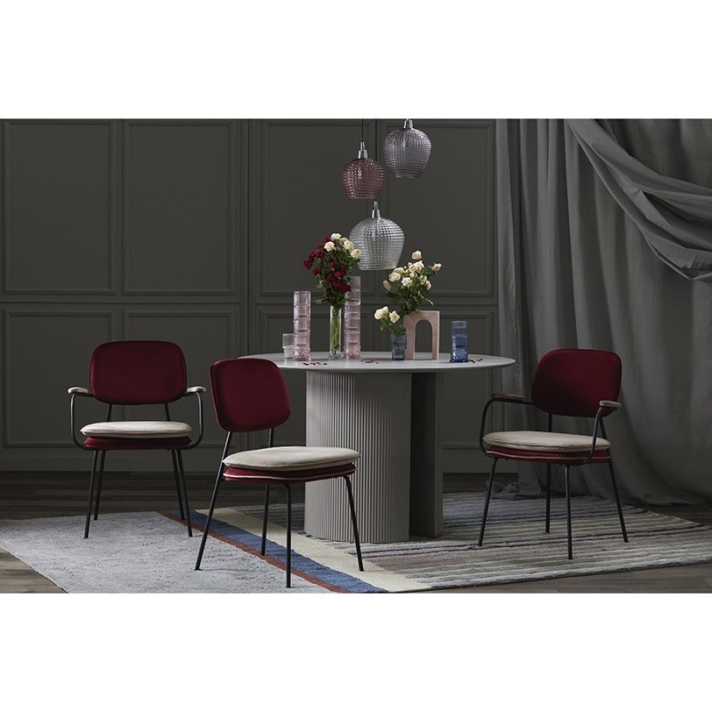 Стул Pea с контрастным кантом и мягкой обивкой из бархатистого велюра станет настоящим украшением интерьера и идеальным выбором для ценителей качественной и элегантной мебели.Особенности и преимущества:- Обивка из велюра создает приятные тактильные ощущения, смотрится презентабельно, придавая мебели изысканный вид. - Удобное сиденье с наполнителем из пенополиуретана и спинка с мягкой обивкой обеспечивают комфортную посадку. - Ножки из железа имеют порошковое покрытие, которое защищает их поверхность от коррозии, потускнения цвета и механических повреждений. - Стабильная и прочная конструкция делает стул устойчивым, надежным и долговечным. - Дизайн актуален для классических и современных стилевых направлений.Перефразируя слова известного британского дизайнера Уильяма Морриса, дом – это не место для бесполезных и некрасивых вещей, и уникальная коллекция Pea является ярким тому подтверждением. В ее основе лежит сказка “Принцесса на горошине”, и ее главная цель – пробудить ребенка в каждом из нас. Мы верим, что предметы должны быть не просто функциональными, но и нести в себе определенный смысл. Поэтому мебель из нашей новой коллекции не только приносит комфорт в ваш дом, но и рассказывает захватывающую историю.Первыми товарами линейки стали предметы мебели для спальни, сегодня она уже включает в себя пуфы, банкетки и стулья. Главный мотив – двойная подушка, которая напоминает нам о сказочном испытании принцессы. Основные особенности коллекции – пуговицы-горошины, подушки квадратной формы с закругленными краями и оригинальные ножки в виде перевернутой буквы Y, которые делают дизайн живым и непринужденным.Материалы: 100% полиэстер, пенополиуретан, фанера (береза), железо. Высота сиденья: 40 см. Ширина сиденья: 47 см. Глубина сиденья: 45 см. Высота спинки: 37,5 см. Ширина спинки: 41 см. Цвет: бордовый/бежевый. Максимальная нагрузка: 150 кг.Рекомендуется регулярно пылесосить мебель с помощью специальной насадки – резиновой или мягкой щетки. Образовавшиеся пятна можно удалять губкой или салфеткой со слабым мыльным раствором воды. Запрещается использовать абразивные материалы и агрессивную бытовую химию.