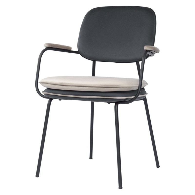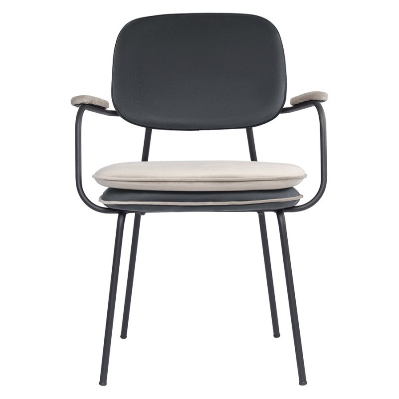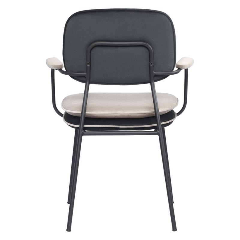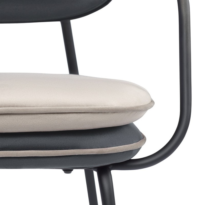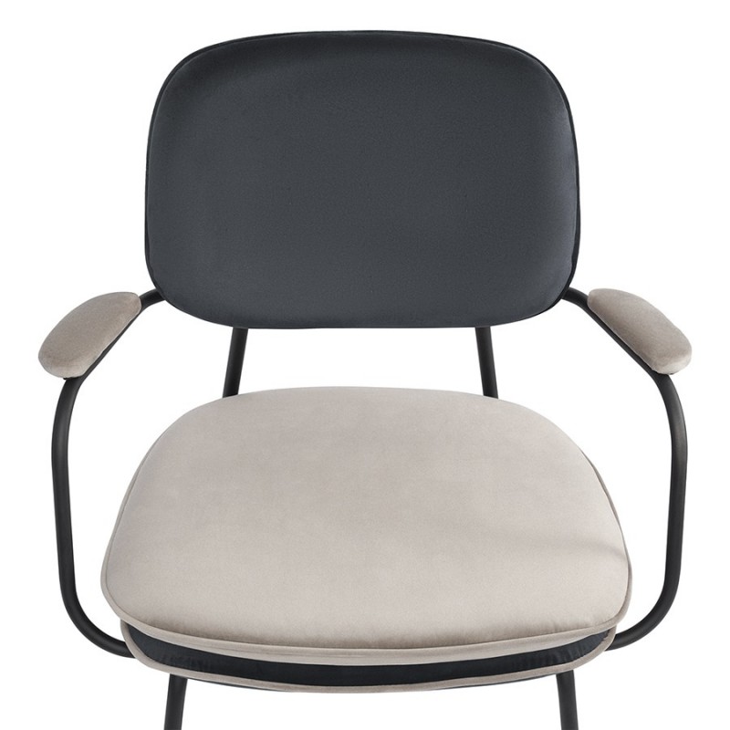 Стул Pea с подлокотниками, контрастным кантом и мягкой обивкой из бархатистого велюра станет настоящим украшением интерьера и идеальным выбором для ценителей качественной и элегантной мебели.Особенности и преимущества:- Обивка из велюра создает приятные тактильные ощущения, смотрится презентабельно, придавая мебели изысканный вид. - Удобное сиденье с наполнителем из пенополиуретана, спинка и подлокотники с мягкими накладками обеспечивают комфортную посадку. - Ножки из железа имеют порошковое покрытие, которое защищает их поверхность от коррозии, потускнения цвета и механических повреждений. - Стабильная и прочная конструкция делает стул устойчивым, надежным и долговечным. - Дизайн актуален для классических и современных стилевых направлений.Перефразируя слова известного британского дизайнера Уильяма Морриса, дом – это не место для бесполезных и некрасивых вещей, и уникальная коллекция Pea является ярким тому подтверждением. В ее основе лежит сказка “Принцесса на горошине”, и ее главная цель – пробудить ребенка в каждом из нас. Мы верим, что предметы должны быть не просто функциональными, но и нести в себе определенный смысл. Поэтому мебель из нашей новой коллекции не только приносит комфорт в ваш дом, но и рассказывает захватывающую историю.Первыми товарами линейки стали предметы мебели для спальни, сегодня она уже включает в себя пуфы, банкетки и стулья. Главный мотив – двойная подушка, которая напоминает нам о сказочном испытании принцессы. Основные особенности коллекции – пуговицы-горошины, подушки квадратной формы с закругленными краями и оригинальные ножки в виде перевернутой буквы Y, которые делают дизайн живым и непринужденным.Материалы: 100% полиэстер, пенополиуретан, фанера (береза), железо. Размеры: 49,5х59х82,5 см. Высота сиденья: 48,5 см. Ширина сиденья: 48 см. Глубина сиденья: 46 см. Высота спинки: 29,5 см. Ширина спинки: 43 см. Цвет: темно-серый/бежевый. Максимальная нагрузка: 150 кг.Рекомендуется регулярно пылесосить мебель с помощью специальной насадки – резиновой или мягкой щетки. Образовавшиеся пятна можно удалять губкой или салфеткой со слабым мыльным раствором воды. Запрещается использовать абразивные материалы и агрессивную бытовую химию.
