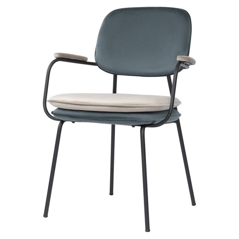 Стул Pea с подлокотниками и мягкой обивкой из бархатистого велюра станет настоящим украшением интерьера и идеальным выбором для ценителей качественной и элегантной мебели.Особенности и преимущества:- Обивка из велюра создает приятные тактильные ощущения, смотрится презентабельно, придавая мебели изысканный вид. - Удобное сиденье с наполнителем из пенополиуретана, спинка и подлокотники с мягкими накладками обеспечивают комфортную посадку. - Ножки из железа имеют порошковое покрытие, которое защищает их поверхность от коррозии, потускнения цвета и механических повреждений. - Стабильная и прочная конструкция делает стул устойчивым, надежным и долговечным. - Дизайн актуален для классических и современных стилевых направлений.Перефразируя слова известного британского дизайнера Уильяма Морриса, дом – это не место для бесполезных и некрасивых вещей, и уникальная коллекция Pea является ярким тому подтверждением. В ее основе лежит сказка “Принцесса на горошине”, и ее главная цель – пробудить ребенка в каждом из нас. Мы верим, что предметы должны быть не просто функциональными, но и нести в себе определенный смысл. Поэтому мебель из нашей новой коллекции не только приносит комфорт в ваш дом, но и рассказывает захватывающую историю.Первыми товарами линейки стали предметы мебели для спальни, сегодня она уже включает в себя пуфы, банкетки и стулья. Главный мотив – двойная подушка, которая напоминает нам о сказочном испытании принцессы. Основные особенности коллекции – пуговицы-горошины, подушки квадратной формы с закругленными краями и оригинальные ножки в виде перевернутой буквы Y, которые делают дизайн живым и непринужденным.Материалы: 100% полиэстер, пенополиуретан, фанера (береза), железо. Размеры: 49,5х59х82,5 см. Высота сиденья: 48,5 см. Ширина сиденья: 48 см. Глубина сиденья: 46 см. Высота спинки: 29,5 см. Ширина спинки: 43 см. Цвет: сине-зеленый/бежевый. Максимальная нагрузка: 150 кг.Рекомендуется регулярно пылесосить мебель с помощью специальной насадки – резиновой или мягкой щетки. Образовавшиеся пятна можно удалять губкой или салфеткой со слабым мыльным раствором воды. Запрещается использовать абразивные материалы и агрессивную бытовую химию.