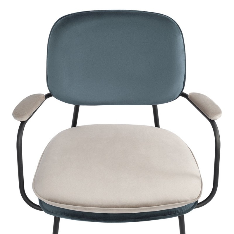 Стул Pea с подлокотниками и мягкой обивкой из бархатистого велюра станет настоящим украшением интерьера и идеальным выбором для ценителей качественной и элегантной мебели.Особенности и преимущества:- Обивка из велюра создает приятные тактильные ощущения, смотрится презентабельно, придавая мебели изысканный вид. - Удобное сиденье с наполнителем из пенополиуретана, спинка и подлокотники с мягкими накладками обеспечивают комфортную посадку. - Ножки из железа имеют порошковое покрытие, которое защищает их поверхность от коррозии, потускнения цвета и механических повреждений. - Стабильная и прочная конструкция делает стул устойчивым, надежным и долговечным. - Дизайн актуален для классических и современных стилевых направлений.Перефразируя слова известного британского дизайнера Уильяма Морриса, дом – это не место для бесполезных и некрасивых вещей, и уникальная коллекция Pea является ярким тому подтверждением. В ее основе лежит сказка “Принцесса на горошине”, и ее главная цель – пробудить ребенка в каждом из нас. Мы верим, что предметы должны быть не просто функциональными, но и нести в себе определенный смысл. Поэтому мебель из нашей новой коллекции не только приносит комфорт в ваш дом, но и рассказывает захватывающую историю.Первыми товарами линейки стали предметы мебели для спальни, сегодня она уже включает в себя пуфы, банкетки и стулья. Главный мотив – двойная подушка, которая напоминает нам о сказочном испытании принцессы. Основные особенности коллекции – пуговицы-горошины, подушки квадратной формы с закругленными краями и оригинальные ножки в виде перевернутой буквы Y, которые делают дизайн живым и непринужденным.Материалы: 100% полиэстер, пенополиуретан, фанера (береза), железо. Размеры: 49,5х59х82,5 см. Высота сиденья: 48,5 см. Ширина сиденья: 48 см. Глубина сиденья: 46 см. Высота спинки: 29,5 см. Ширина спинки: 43 см. Цвет: сине-зеленый/бежевый. Максимальная нагрузка: 150 кг.Рекомендуется регулярно пылесосить мебель с помощью специальной насадки – резиновой или мягкой щетки. Образовавшиеся пятна можно удалять губкой или салфеткой со слабым мыльным раствором воды. Запрещается использовать абразивные материалы и агрессивную бытовую химию.