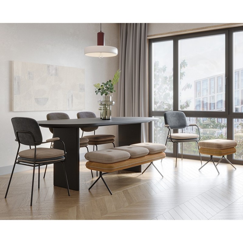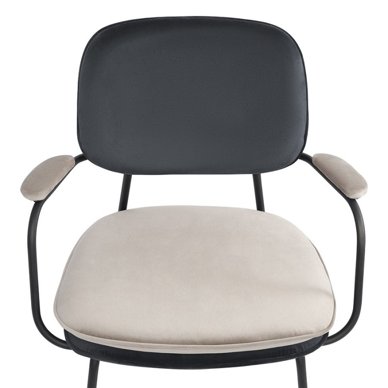 Стул Pea с подлокотниками и мягкой обивкой из бархатистого велюра станет настоящим украшением интерьера и идеальным выбором для ценителей качественной и элегантной мебели.Особенности и преимущества:- Обивка из велюра создает приятные тактильные ощущения, смотрится презентабельно, придавая мебели изысканный вид. - Удобное сиденье с наполнителем из пенополиуретана, спинка и подлокотники с мягкими накладками обеспечивают комфортную посадку. - Ножки из железа имеют порошковое покрытие, которое защищает их поверхность от коррозии, потускнения цвета и механических повреждений. - Стабильная и прочная конструкция делает стул устойчивым, надежным и долговечным. - Дизайн актуален для классических и современных стилевых направлений.Перефразируя слова известного британского дизайнера Уильяма Морриса, дом – это не место для бесполезных и некрасивых вещей, и уникальная коллекция Pea является ярким тому подтверждением. В ее основе лежит сказка “Принцесса на горошине”, и ее главная цель – пробудить ребенка в каждом из нас. Мы верим, что предметы должны быть не просто функциональными, но и нести в себе определенный смысл. Поэтому мебель из нашей новой коллекции не только приносит комфорт в ваш дом, но и рассказывает захватывающую историю.Первыми товарами линейки стали предметы мебели для спальни, сегодня она уже включает в себя пуфы, банкетки и стулья. Главный мотив – двойная подушка, которая напоминает нам о сказочном испытании принцессы. Основные особенности коллекции – пуговицы-горошины, подушки квадратной формы с закругленными краями и оригинальные ножки в виде перевернутой буквы Y, которые делают дизайн живым и непринужденным.Материалы: 100% полиэстер, пенополиуретан, фанера (береза), железо. Размеры: 49,5х59х82,5 см. Высота сиденья: 48,5 см. Ширина сиденья: 48 см. Глубина сиденья: 46 см. Высота спинки: 29,5 см. Ширина спинки: 43 см. Цвет: темно-серый/бежевый. Максимальная нагрузка: 150 кг.Рекомендуется регулярно пылесосить мебель с помощью специальной насадки – резиновой или мягкой щетки. Образовавшиеся пятна можно удалять губкой или салфеткой со слабым мыльным раствором воды. Запрещается использовать абразивные материалы и агрессивную бытовую химию.