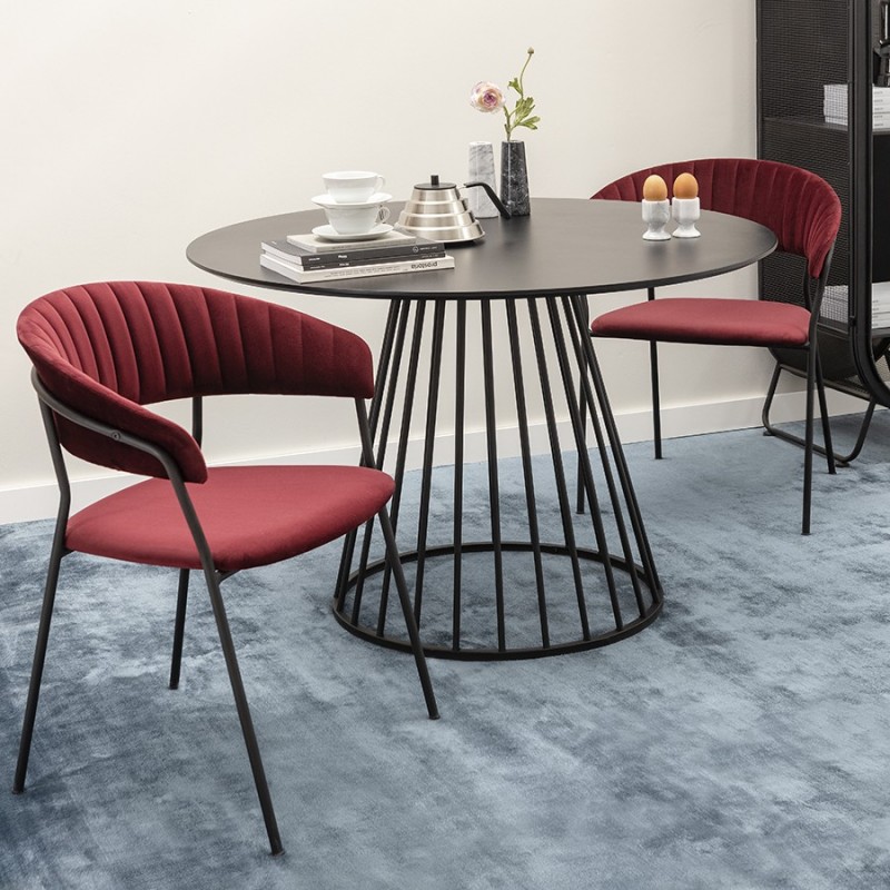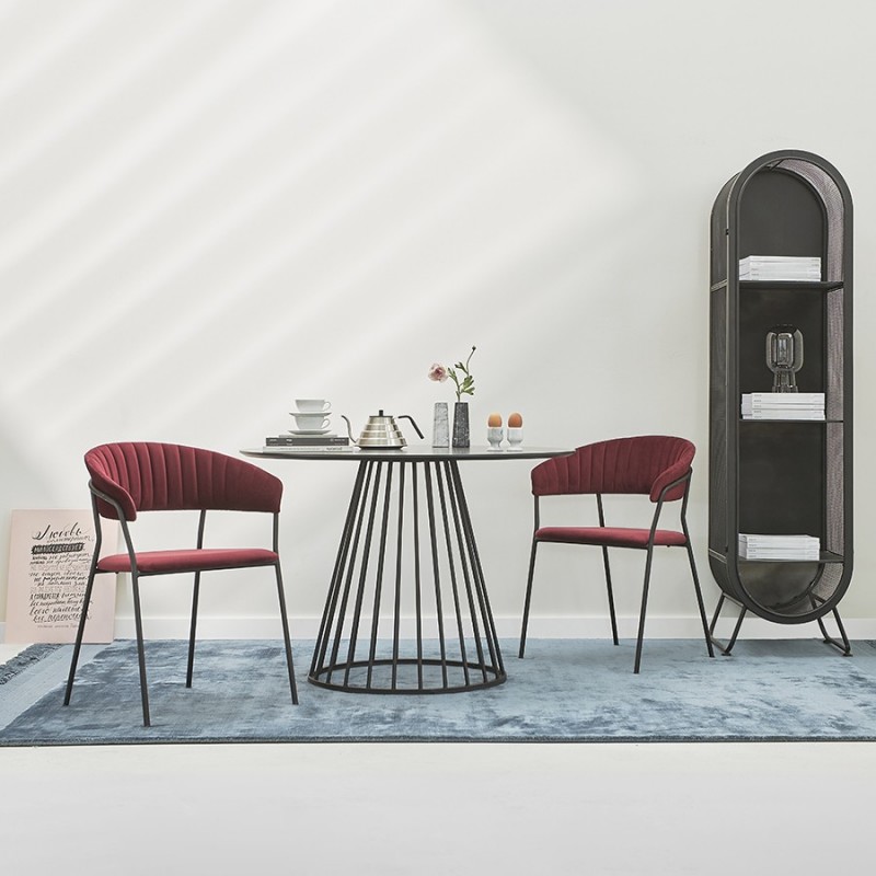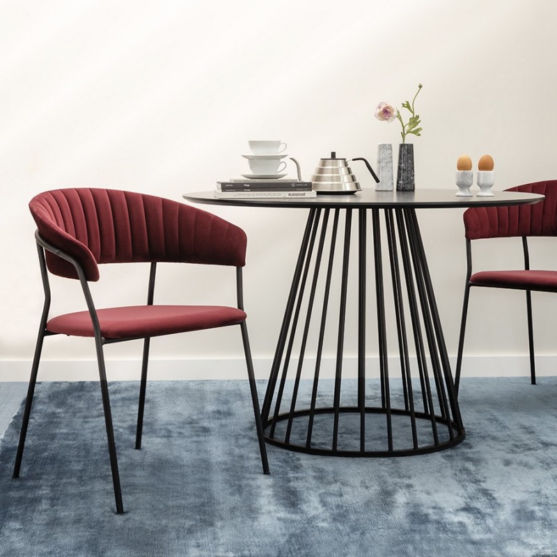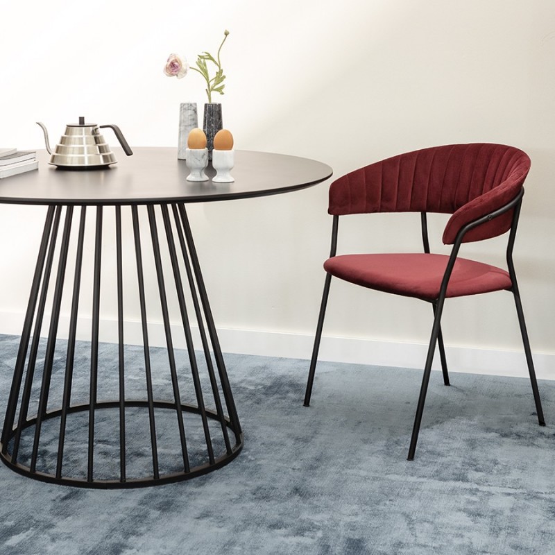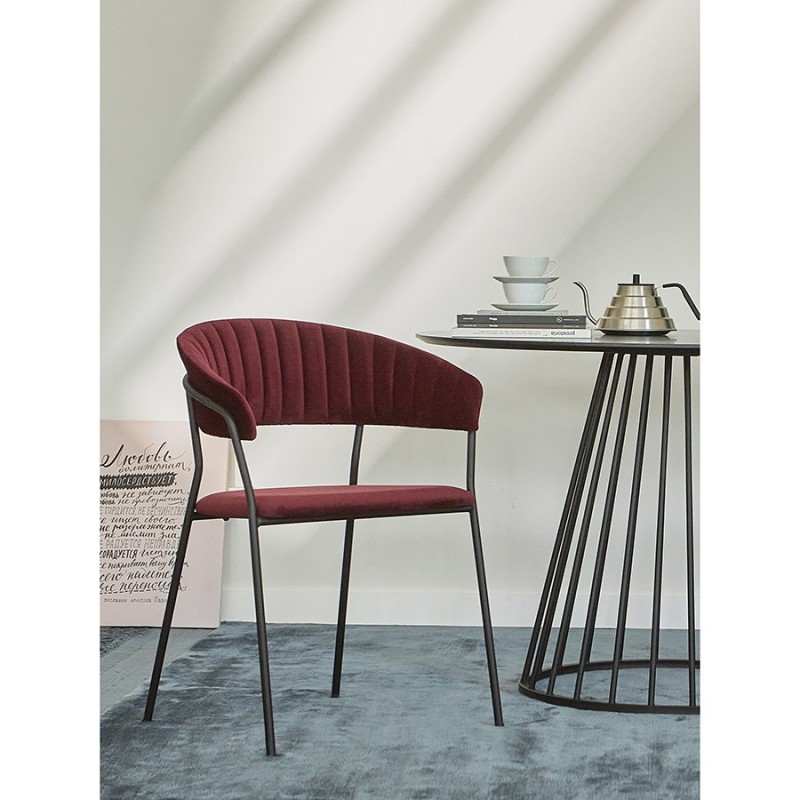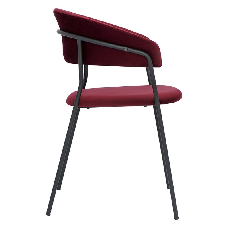 Стул Stefany удачно сочетает комфорт и эстетику. Этот предмет мебели станет заметным акцентом в интерьере и воплощением безупречного вкуса.Мягкие сиденье и спинка, обтянутые велюром, создают комфорт во время отдыха на стуле. Материал с бархатистой фактурой обеспечивает красивый визуальный эффект и дарит приятные тактильные ощущения. Помимо высоких декоративных свойств ткань обивки характеризуется долговечностью и устойчивостью к износу. Железные ножки гарантируют конструкции прочность и надежность. Такой тандем материалов позволяет сочетать стул с различной отделкой и декором.Материалы: 100% полиэстер, фанера, пенополиуретан, железо. Размеры: Высота сиденья: 45 см. Ширина сиденья: 49 см. Глубина сиденья: 42,5 см. Высота спинки: 33 см. Ширина спинки: 50 см. Высота подлокотников: 24 см. Максимальная нагрузка: 120 кг. Цвет: винный.Рекомендуется регулярно пылесосить мебель с помощью специальной насадки – резиновой или мягкой щетки. Образовавшиеся пятна можно удалять губкой или салфеткой со слабым мыльным раствором воды. Запрещается использовать абразивные материалы и агрессивную бытовую химию.