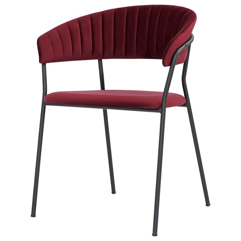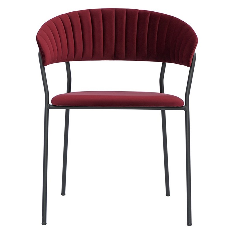 Стул Stefany удачно сочетает комфорт и эстетику. Этот предмет мебели станет заметным акцентом в интерьере и воплощением безупречного вкуса.Мягкие сиденье и спинка, обтянутые велюром, создают комфорт во время отдыха на стуле. Материал с бархатистой фактурой обеспечивает красивый визуальный эффект и дарит приятные тактильные ощущения. Помимо высоких декоративных свойств ткань обивки характеризуется долговечностью и устойчивостью к износу. Железные ножки гарантируют конструкции прочность и надежность. Такой тандем материалов позволяет сочетать стул с различной отделкой и декором.Материалы: 100% полиэстер, фанера, пенополиуретан, железо. Размеры: Высота сиденья: 45 см. Ширина сиденья: 49 см. Глубина сиденья: 42,5 см. Высота спинки: 33 см. Ширина спинки: 50 см. Высота подлокотников: 24 см. Максимальная нагрузка: 120 кг. Цвет: винный.Рекомендуется регулярно пылесосить мебель с помощью специальной насадки – резиновой или мягкой щетки. Образовавшиеся пятна можно удалять губкой или салфеткой со слабым мыльным раствором воды. Запрещается использовать абразивные материалы и агрессивную бытовую химию.
