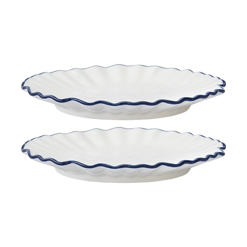 Тарелки десертные из коллекции Santorini от бренда Liberty Jones воплощают в себе элегантность посуды из фарфора, привлекая необычным дизайном с контрастными акцентами.Особенности и преимущества:- Фарфор является прочным, устойчивым к износу материалом, который сохраняет презентабельный вид долгие годы. - Акцент в виде контрастной каймы и легкий рельеф делают дизайн интересным и запоминающимся. - Идеально гладкая поверхность и высокая сопротивляемость материала к химическим воздействиям обеспечивают простой уход. - Белая посуда отлично гармонирует с предметами сервировки любой цветовой гаммы.Коллекция Santorini великолепно передает атмосферу уединенного греческого острова, известного своими завораживающими видами и удивительной архитектурой. Оттенки белого и синего напоминают о бескрайнем море и уютных домиках на скалах, а необычная “мятая” фактура фарфора ассоциируется с каменистыми склонами и живописными утесами.Материал: фарфор. Размеры: 16х16х2 см. Количество в наборе: 2 шт.Можно мыть в посудомоечной машине, замораживать, использовать в микроволновой печи и духовке при температуре не более 180° C.