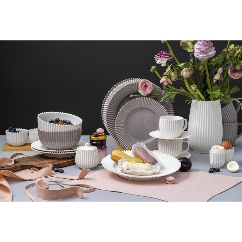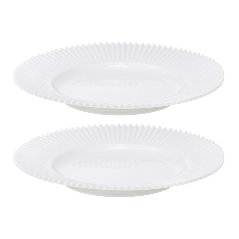 Набор из двух десертных тарелок белого цвета подойдет как для праздничной сервировки, так и для обычного приема пищи в будний день. Фарфоровые борта тарелок имеют рифленую поверхность и оригинальный зубчатый край, что добавляет дизайну утонченность и изящество. При этом они достаточно прочны, чтобы выдерживать мытье в посудомоечной машине, так что ухаживать за ними будет очень просто. С этими тарелками можно составить целый сервиз, добавив к ним другую посуду из серии Edge — например, чашки и салатники.Диаметр: 21 см. Материал: фарфор.• Можно использовать в микроволновой печи • Можно мыть в посудомоечной машине • Можно использовать в духовке при температуре не более 180° C • Можно замораживать