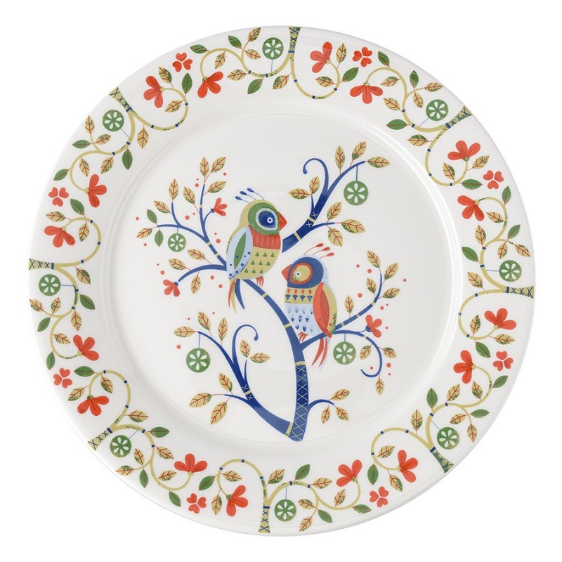 Набор тарелок Love Birds из коллекции Birds of Paradise – красивая и качественная посуда из фарфора, которая украсит интерьер кухни и сделает любую сервировку особенной.Особенности и преимущества:- Нанесение слоя глазури поверх узора позволяет изделиям сохранять безупречный вид долгие годы, даже после воздействия высоких температур и частого мытья в посудомоечной машине. - Тарелки из высококачественного глазурованного фарфора имеют идеально гладкую поверхность, с которой легко удаляются любые загрязнения. - Материал обладает прочностью, является экологичным, безопасным для здоровья, не подвержен старению. - Яркий принт природной тематики приковывает взгляды и позволяет посуде стать настоящим украшением любого стола. - Набор поставляется в фирменной подарочной упаковке.Коллекция Birds of Paradise разработана английской художницей Karen Wall, основным направлением творчества которой является создание иллюстраций для посуды, домашнего текстиля и детских книг. В основе дизайна – природные мотивы, вдохновленные традиционным фольклором Великобритании 19-го века. Атмосфера волшебного леса с райскими птицами погружает в мир добрых грез и фантазий, где всегда тепло, уютно и есть место чудесам.Наши продукты прошли испытания на отсутствие в составе свинца и кадмия в соответствии со стандартными тестами FDA.Материал: фарфор. Размеры: 28х28х2,3 см. Количество в наборе: 2 шт.Можно мыть в посудомоечной машине, использовать в микроволновой печи и духовке при температуре не более 250° C.