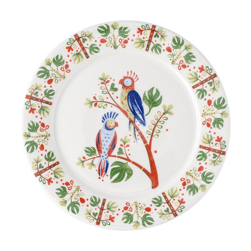 Набор тарелок Parrot из коллекции Birds of Paradise – красивая и качественная посуда из фарфора, которая украсит интерьер кухни и сделает любую сервировку особенной.Особенности и преимущества:- Нанесение слоя глазури поверх узора позволяет изделиям сохранять безупречный вид долгие годы, даже после воздействия высоких температур и частого мытья в посудомоечной машине. - Тарелки из высококачественного глазурованного фарфора имеют идеально гладкую поверхность, с которой легко удаляются любые загрязнения. - Материал обладает прочностью, является экологичным, безопасным для здоровья, не подвержен старению. - Яркий принт природной тематики приковывает взгляды и позволяет посуде стать настоящим украшением любого стола. - Набор поставляется в фирменной подарочной упаковке.Коллекция Birds of Paradise разработана английской художницей Karen Wall, основным направлением творчества которой является создание иллюстраций для посуды, домашнего текстиля и детских книг. В основе дизайна – природные мотивы, вдохновленные традиционным фольклором Великобритании 19-го века. Атмосфера волшебного леса с райскими птицами погружает в мир добрых грез и фантазий, где всегда тепло, уютно и есть место чудесам.Наши продукты прошли испытания на отсутствие в составе свинца и кадмия в соответствии со стандартными тестами FDA.Материал: фарфор. Размеры: 21х21х1,85 см. Количество в наборе: 2 шт.Можно мыть в посудомоечной машине, использовать в микроволновой печи и духовке при температуре не более 250° C.