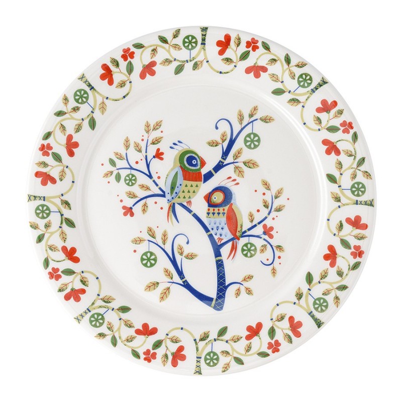 Тарелка Love Birds из коллекции Birds of Paradise – красивая и качественная посуда из фарфора, которая украсит интерьер кухни и сделает любую сервировку особенной.Особенности и преимущества:- Нанесение слоя глазури поверх узора позволяет изделию сохранять безупречный вид долгие годы, даже после воздействия высоких температур и частого мытья в посудомоечной машине. - Тарелка из высококачественного глазурованного фарфора имеет идеально гладкую поверхность, с которой легко удаляются любые загрязнения. - Материал обладает прочностью, является экологичным, безопасным для здоровья, не подвержен старению. - Яркий принт природной тематики приковывает взгляды и позволяет посуде стать настоящим украшением любого стола.Коллекция Birds of Paradise разработана английской художницей Karen Wall, основным направлением творчества которой является создание иллюстраций для посуды, домашнего текстиля и детских книг. В основе дизайна – природные мотивы, вдохновленные традиционным фольклором Великобритании 19-го века. Атмосфера волшебного леса с райскими птицами погружает в мир добрых грез и фантазий, где всегда тепло, уютно и есть место чудесам.Наши продукты прошли испытания на отсутствие в составе свинца и кадмия в соответствии со стандартными тестами FDA.Материал: фарфор. Размеры: 21х21х1,85 см.Можно мыть в посудомоечной машине, использовать в микроволновой печи и духовке при температуре не более 250° C.