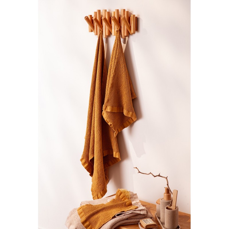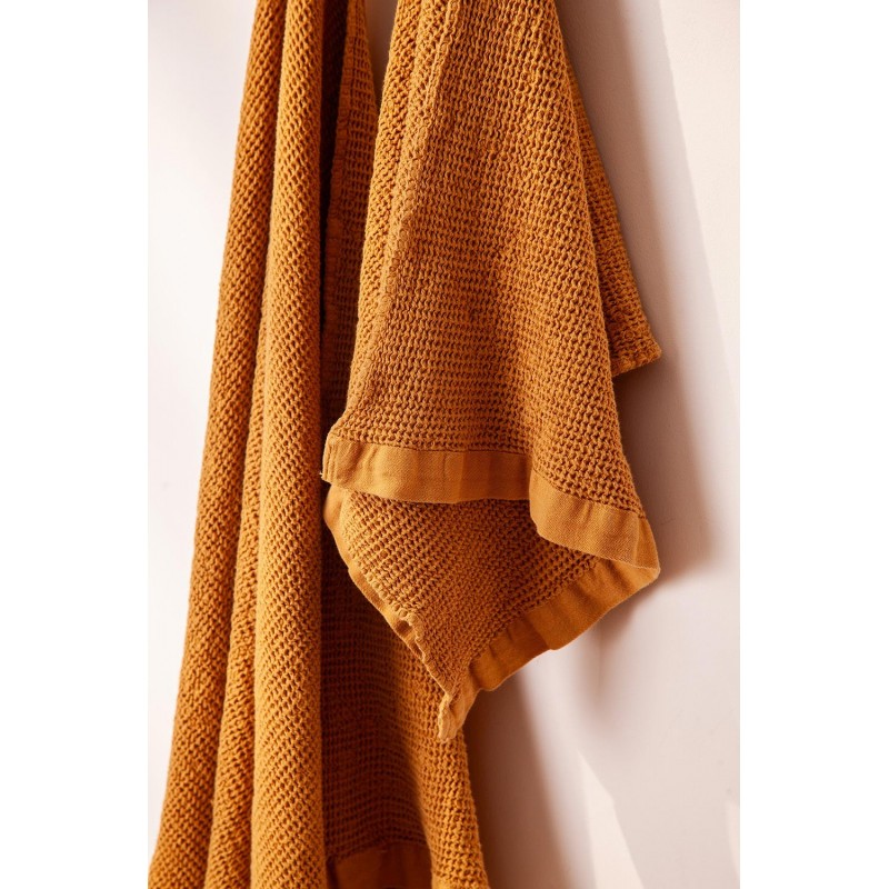 Полотенце банное из умягченной вафли цвета охры из коллекции Essential подарит ощущение комфорта после водных процедур, а также украсит интерьер вашей ванной комнаты.Особенности и преимущества:- Натуральный хлопок – экологичный, износостойкий материал, который хорошо впитывает влагу и не вызывает аллергических реакций. - Ткань прошла специальную обработку для достижения особой мягкости – полотенце приятное на ощупь и не травмирует кожу. - Благодаря вафельному плетению материал хорошо пропускает воздух, быстро сохнет и отличается легкостью. - Полотенце нейтрального оттенка прекрасно вписывается в интерьер в любой цветовой гамме.Материал: 100% xлопок. Размер: 70x140 см. ! Максимальная температура стирки 40° C ! ! Гладить при максимальной температуре 110° C ! Барабанная сушка запрещена ! Не отбеливать. ! Суxая чистка запрещена