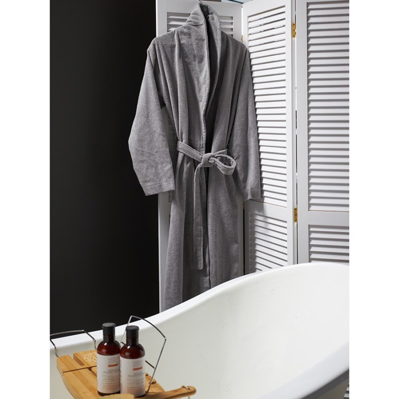 Халат махровый серого цвета из коллекции Essential подарит чувство комфорта после ванны и душа. Мягкая, при этом прочная ткань изготавливается из лучших сортов длинноволокнистого хлопка методом тщательного прочесывания, что значительно улучшает эксплуатационные характеристики готового изделия. Материал устойчив к износу, быстро впитывает влагу, оставляя приятное ощущение свежести и чистоты. Халат хорошо держит форму и сохраняет привлекательный вид после множества стирок. Модель с шалевым воротником дополнена двумя карманами и широким поясом.Выбирая махровый халат из натурального хлопка из коллекции Essential, вы демонстрируете бережное отношение к себе и любовь к качественным вещам. Этот незаменимый аксессуар делает утренние и вечерние ритуалы еще более приятными, наполняя вас ощущением гармонии и умиротворения.Материал: 100% хлопок. Плотность: 326 GSM. Размер: XL. Ширина линии плеч – 52 см Длина рукава – 62 см Ширина груди – 61 см Длина пояса – 180 см Ширина пояса – 4 см Длина изделия – 134 см Ширина низа – 140 см! Максимальная температура стирки 40° C ! Гладить при максимальной температуре 110° C ! Барабанная сушка запрещена ! Не отбеливать ! Сухая чистка запрещена