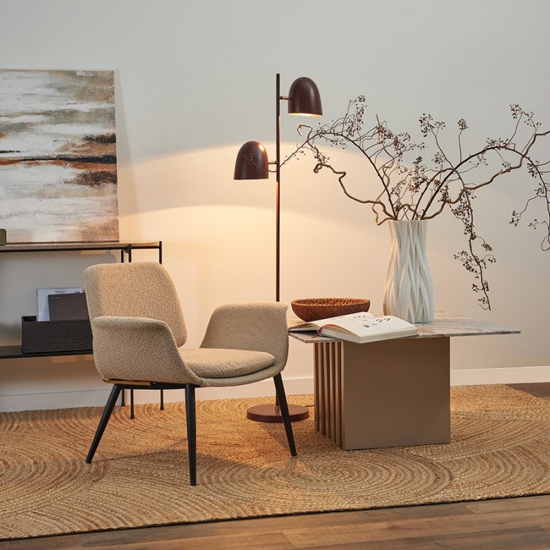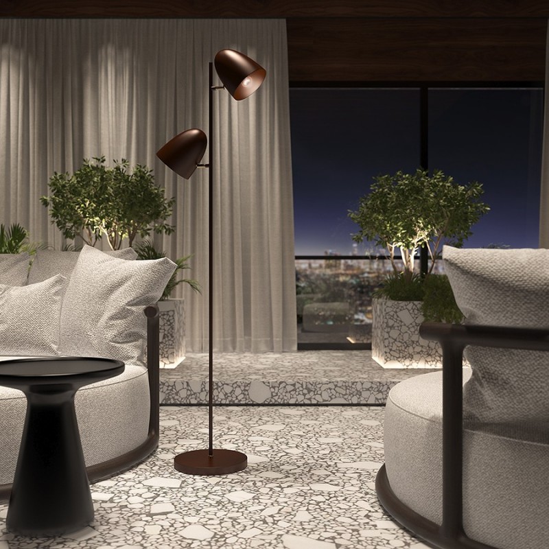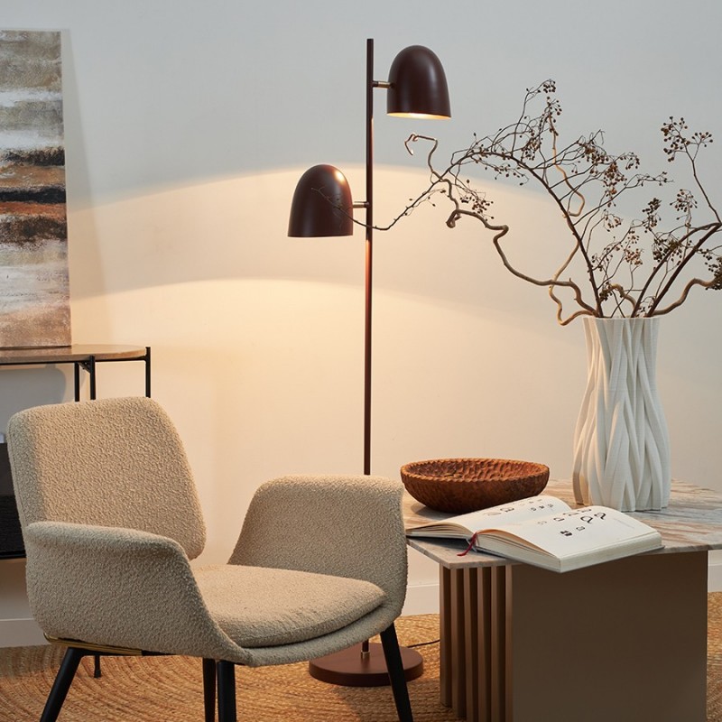 Торшер Fedd великолепно дополнит интерьер в современном стиле и поможет в создании эффективных сценариев освещения. Разместив эту напольную лампу у дивана или кресла, вы получите уютное пространство для отдыха и чтения. Модель отлично смотрится в гостиной, спальне, кабинете и любых других комнатах.Особенности и преимущества:- Железная конструкция с добавлением элементов из латуни имеет привлекательный вид, отличается прочностью и долговечностью. - Подвижные, направленные в разные стороны плафоны, обеспечивают качественное освещение пространства. - Торшер имеет небольшой вес и компактные размеры, что дает возможность без труда перемещать его и устанавливать в любом месте. - Нейтральный оттенок и минималистичный дизайн позволяют вписать модель в различные стилевые решения. - Распространенный тип цоколя Е27 подходит для большинства ламп.Материал: железо, латунь. Размеры: 42х28х153 см. Высота плафона: 18 см. Диаметр плафона: 15,2 см. Высота ножки: 150 см. Диаметр основания: 23,3 см. Цвет: вишневый. Тип цоколя: Е27. Степень пылевлагозащиты: IP20. Тип цоколя: Е27. Максимальная мощность лампы: 5 Вт. Степень пылевлагозащиты: IP20. Переключатель: ножной. Длина провода: 3,5 м. Лампы в комплекте: нет.Для удаления пыли и загрязнений используйте сухую мягкую ткань. Запрещается применение абразивных материалов и агрессивной бытовой химии. Перед очищением убедитесь, что светильник не подключен к сети. Осветительный прибор со степенью пылевлагозащиты IP20 можно устанавливать только в сухих помещениях, где отсутствует вероятность попадания на корпус брызг воды и исключается любое механическое воздействие.