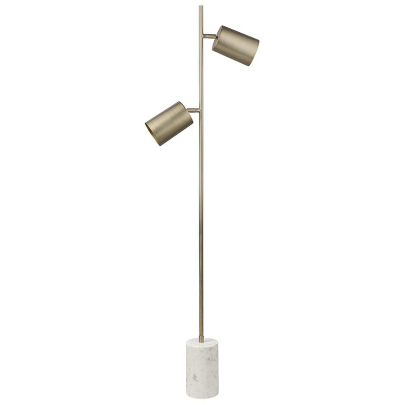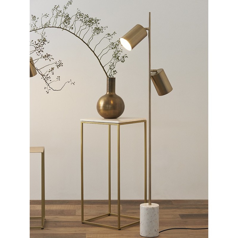 Торшер Irjo станет не только функциональным дополнением интерьера, но и оригинальным декором, который обязательно обратит на себя внимание. Такой напольный светильник будет эффектно смотреться в гостиной, спальне или кабинете, где удачно сочетаются различные стили.Особенности и преимущества:- Функциональные элементы из железа и устойчивое основание из мрамора обеспечивают светильнику привлекательный вид и долговечность. - Плафоны подвижно соединены с корпусом, что позволяет управлять световым потоком для качественного освещения пространства. - Сочетание элементов золотистого цвета и натурального мрамора привносит в интерьер нотки роскоши и благородства.Материал: железо, мрамор. Высота: 149,5 см. Цвет: золотистый. Тип цоколя: Е27. Максимальная мощность лампы: 5 Вт. Степень пылевлагозащиты: IP20. Переключатель: ножной. Длина провода: 3,5 м. Лампы в комплекте: нет.Для удаления пыли и загрязнений используйте сухую мягкую ткань. Запрещается применение абразивных материалов и агрессивной бытовой химии. Перед очищением убедитесь, что светильник не подключен к сети. Осветительный прибор со степенью пылевлагозащиты IP20 можно устанавливать только в сухих помещениях, где отсутствует вероятность попадания на корпус брызг воды и исключается любое механическое воздействие.