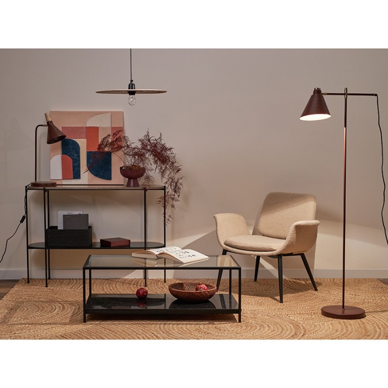 Торшер Rifl – простой способ сделать любое пространство более уютным и функциональным. Дизайн светильника прекрасно гармонирует с популярными интерьерными стилями: эко, фьюжн, прованс, сканди, лофт и другими. Модель отлично смотрится в гостиной, спальне, кабинете, прихожей.Особенности и преимущества:- Сочетание элементов из железа и латуни делает конструкцию надежной и долговечной. - Непрозрачный плафон с подвижным соединением создает направленный световой поток для качественной подсветки необходимой зоны. - Небольшой вес позволяет без труда перемещать торшер, а длинный провод дает возможность установки в любом уголке комнаты. - Распространенный тип цоколя Е27 подходит для большинства ламп, включая энергосберегающие источники света.Материал: железо, латунь. Высота: 146 см. Цвет: сливовый. Тип цоколя: Е27. Максимальная мощность лампы: 5 Вт. Степень пылевлагозащиты: IP20. Переключатель: ножной. Длина провода: 3,5 м. Лампы в комплекте: нет.Для удаления пыли и загрязнений используйте сухую мягкую ткань. Запрещается применение абразивных материалов и агрессивной бытовой химии. Перед очищением убедитесь, что светильник не подключен к сети. Осветительный прибор со степенью пылевлагозащиты IP20 можно устанавливать только в сухих помещениях, где отсутствует вероятность попадания на корпус брызг воды и исключается любое механическое воздействие.